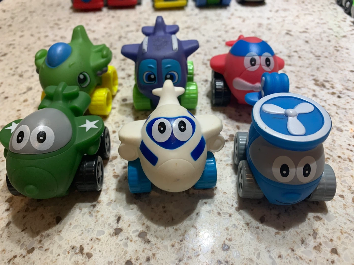 Selling a set of 6 cute toy airplane cars! They are in great condition and ready for a new owner. The set includes a variety of different airplane designs and colours.