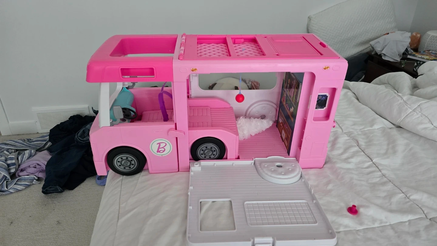 Selling a Barbie DreamCamper vehicle playset! It's in great condition and ready for new adventures. This fun playset is perfect for Barbie fans and includes lots of interactive features for imaginative play
