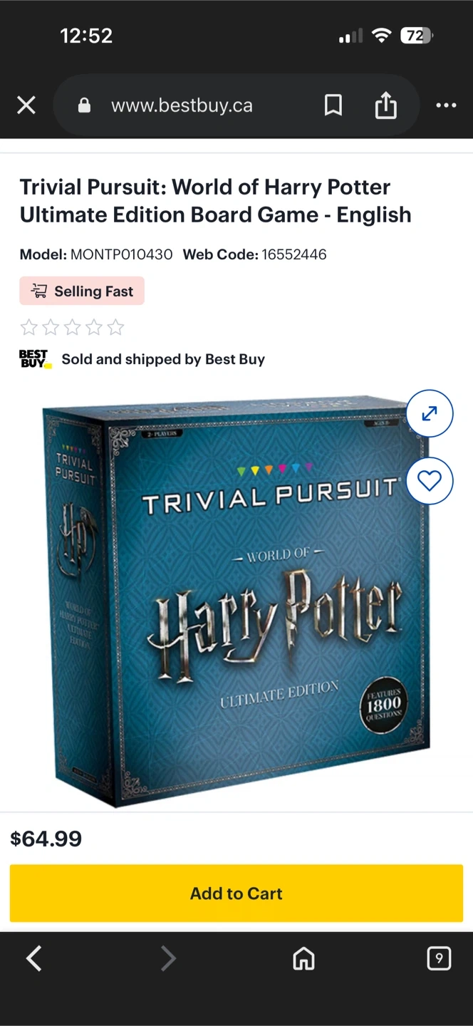 Selling a Trivial Pursuit: World of Harry Potter Ultimate Edition board game. It features 1800 questions! Comes with all the pieces and the box. Only been played once or twice, virtually brand new! Retails for $65+ asking $50.