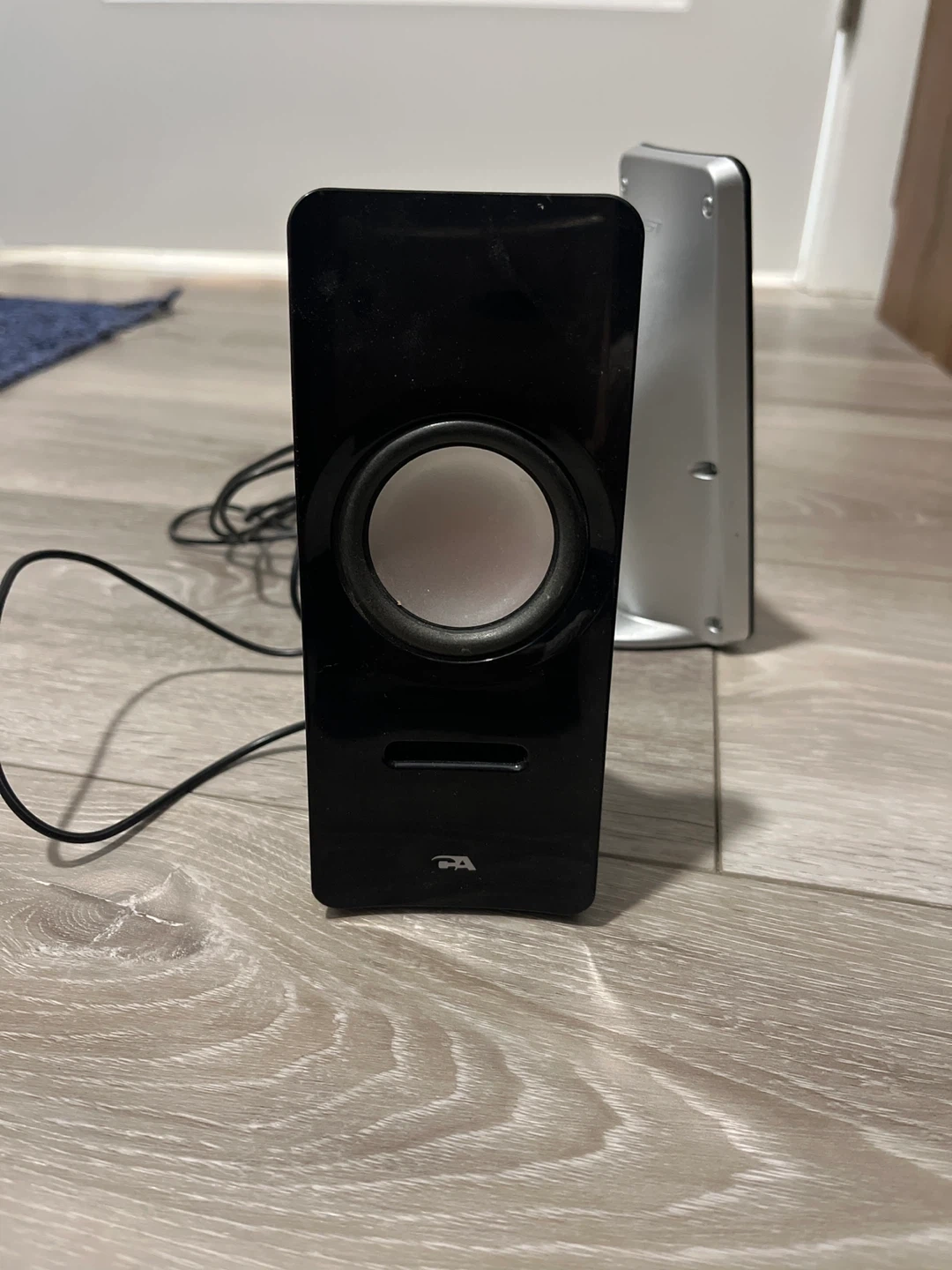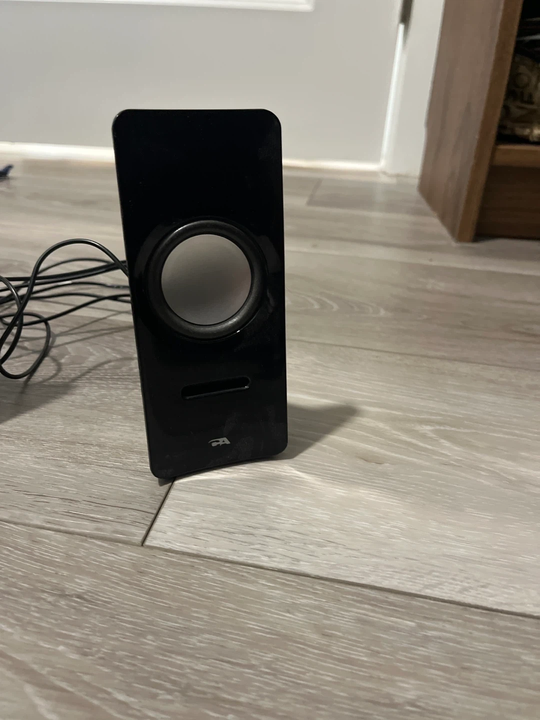 Selling a pair of Cyber Acoustics CA-2016 computer speakers in black. They're in great condition and ready to use with your computer or other audio devices. Perfect for enhancing your audio experience while working or enjoying music!