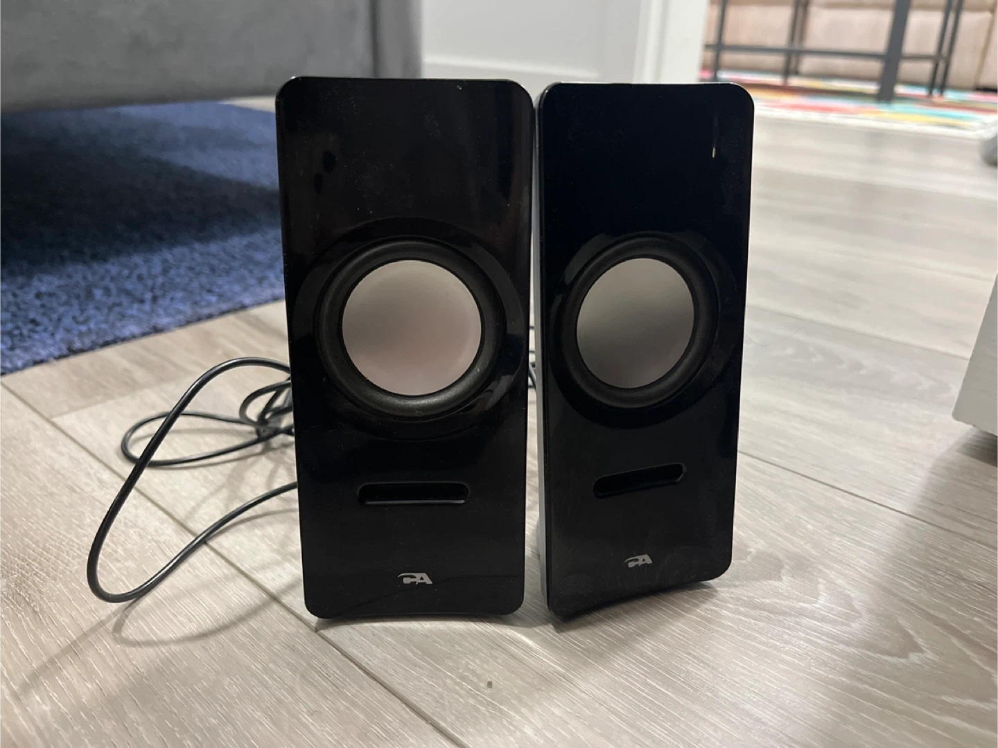 Selling a pair of Cyber Acoustics CA-2016 computer speakers in black. They're in great condition and ready to use with your computer or other audio devices. Perfect for enhancing your audio experience while working or enjoying music!