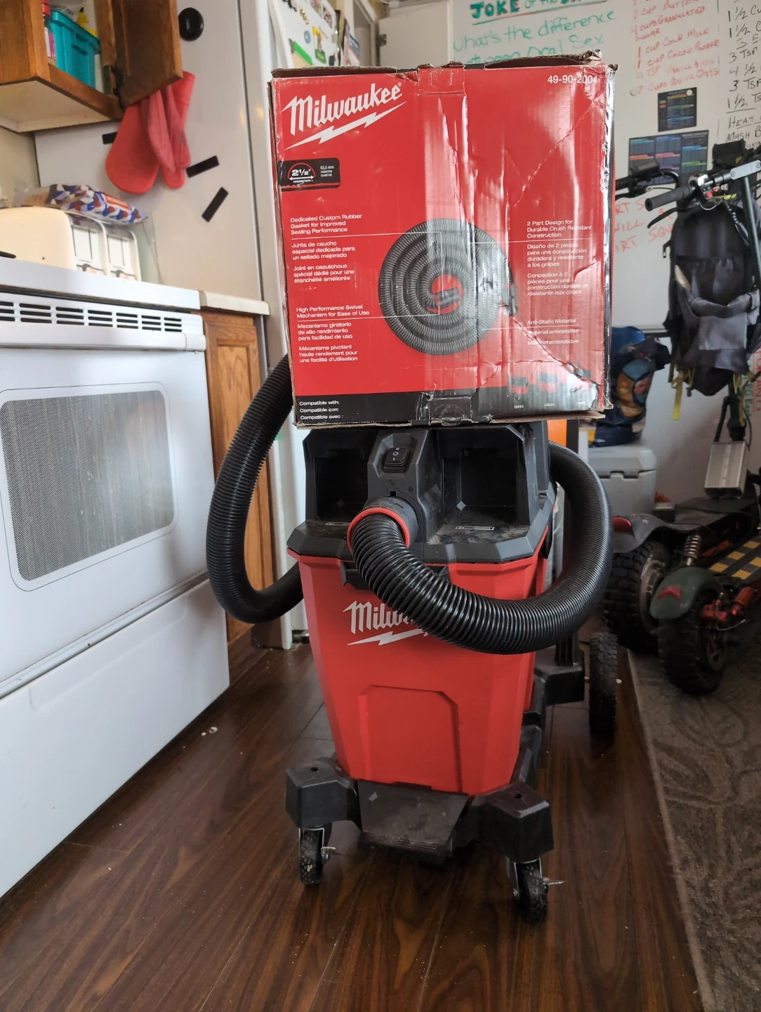 GREAT PRESENT FOR XMAS. Selling a Milwaukee M18 FUEL 12 Gallon Dual-Battery Wet/Dry Vacuum! It brings unmatched performance, durability, and versatility to components. It also outperforms 4.25 Peak HP Wet/Dry Vacuums, delivering more cleaning power than corded. The MILWAUKEE Dual-Battery Motor Head requires (2) batteries to operate and cleans up more common jobsite debris like drywall dust, concrete dust, and wood/metal shavings than 4.25 peak HP wet/dry vacs in the same amount of time. This cordless vac provides you with the Most Durable Wheels and Hoses with reinforced casters and tread design for up to 8X wheel life. The crush and twist-resistant hose construction delivers up to 2X hose life. This vac is part of the Most Versatile Wet/Dry Vacuum System with interchangeable motor heads, tanks, and carts for varying performance, holding capacity, and mobility with the easy access foot pedal rarely used in excellent condition willing to negotiate price to an extent. No lowballers please. Comes with an extra 12' of hose new in box.