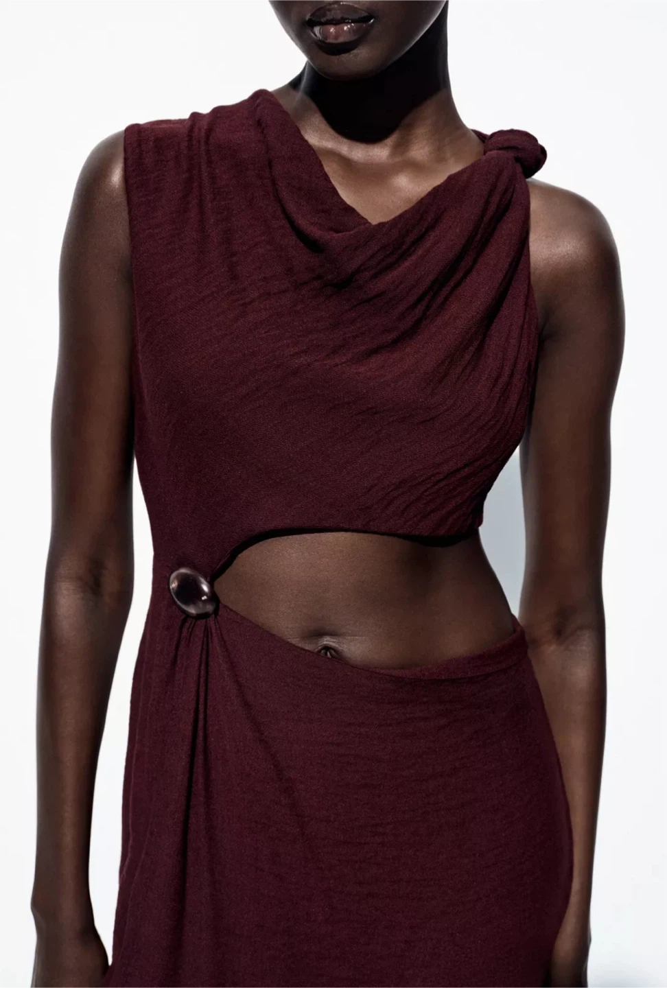 This is a Zara dress with a cut out design. It's a stylish piece that would be a great addition to your wardrobe!