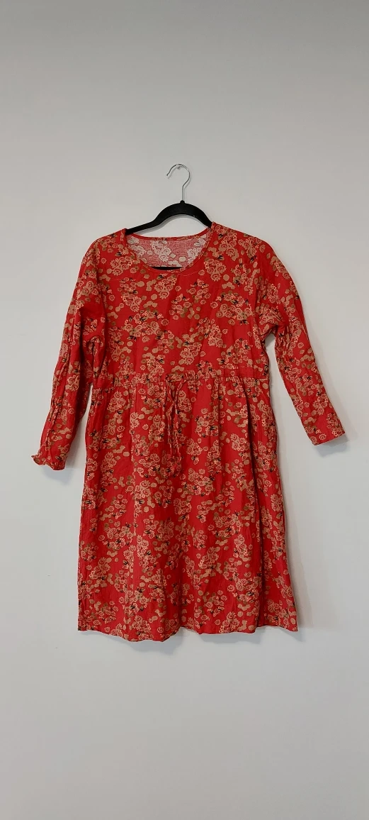 Cute floral print dresses, perfect for spring or summer! It's in good condition and features a comfortable fit with a drawstring waist. The material is lightweight and breathable, making it ideal for warmer weather