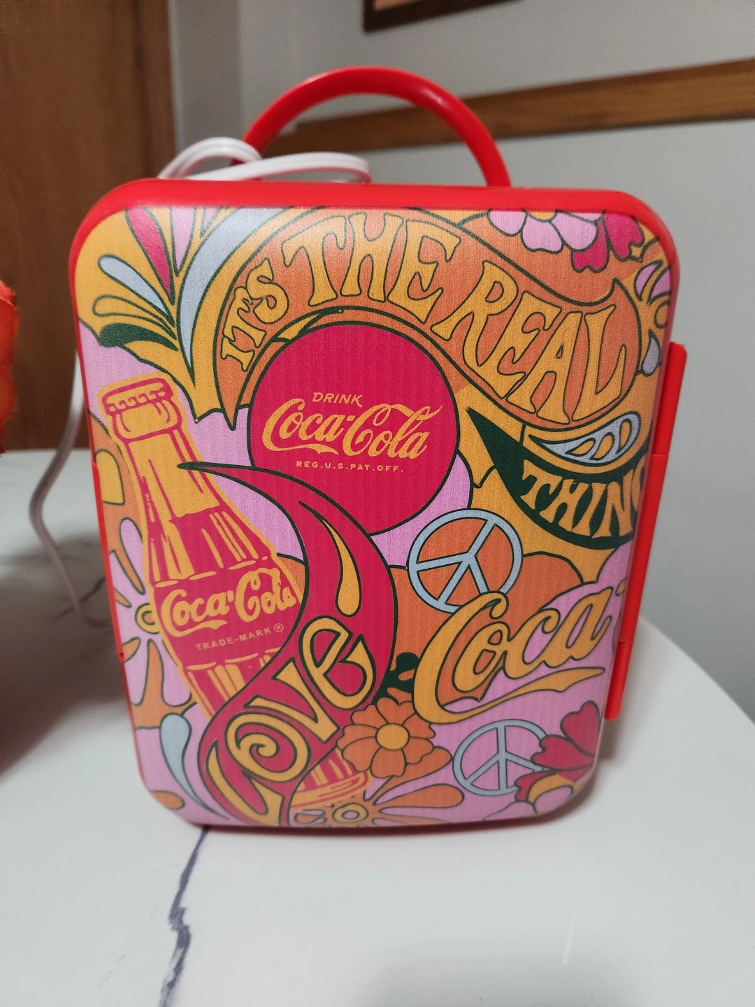 Selling a super cute Coca-Cola mini fridge with a retro design! It's in great shape and perfect for keeping your drinks cool. It has a red exterior with fun, colourful graphics. Perfect for a dorm room, office, or just a fun addition to your space!