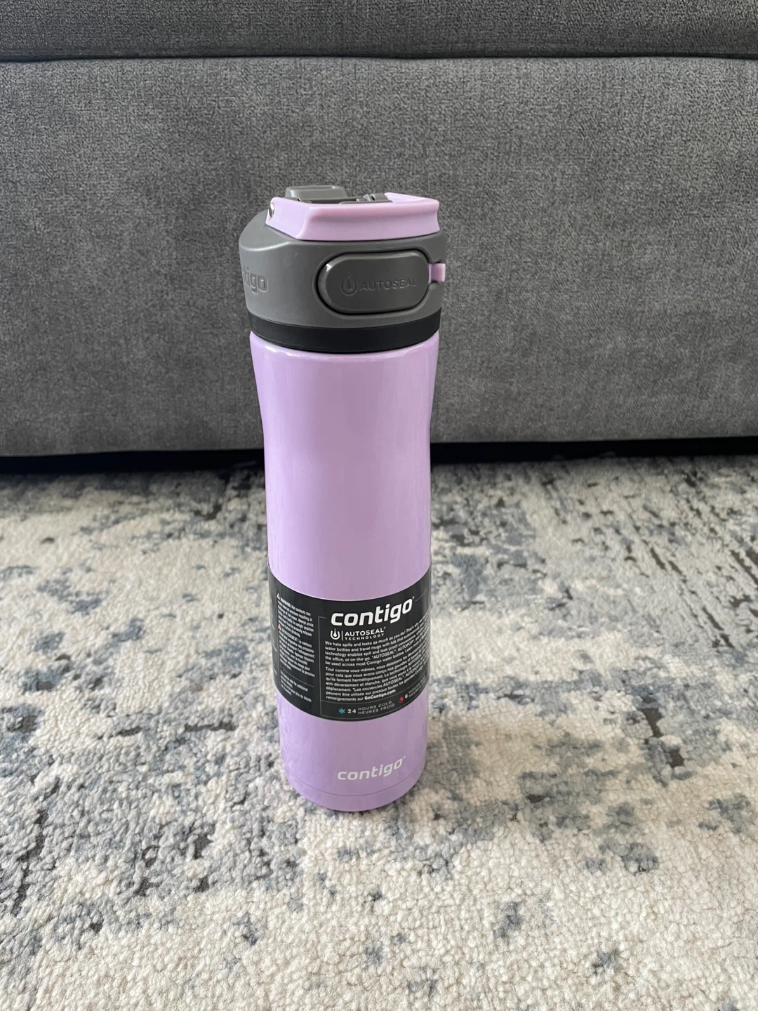 Keep your drinks cold with this Contigo Cortland Chill water bottle! It's a 24 oz bottle in a lovely lilac colour. It features an autoseal spill-proof lid, so no need to worry about leaks. Perfect for staying hydrated on the go