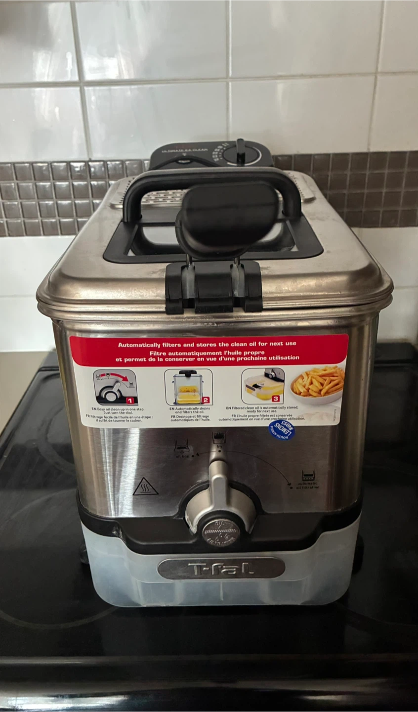 Selling a T-fal EZ Clean Deep Fryer, Low Odor XL Deep Fat Fryer with a 3.5L capacity. It automatically filters and stores the clean oil for the next use. Great for making fries or other fried foods at home!
