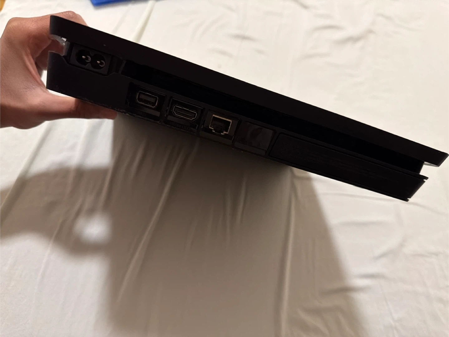 Selling a PlayStation 4 Slim in black. It's in decent outside condition but great performance and ready for a new owner! Perfect for gaming and entertainment. Cash only payments!!!