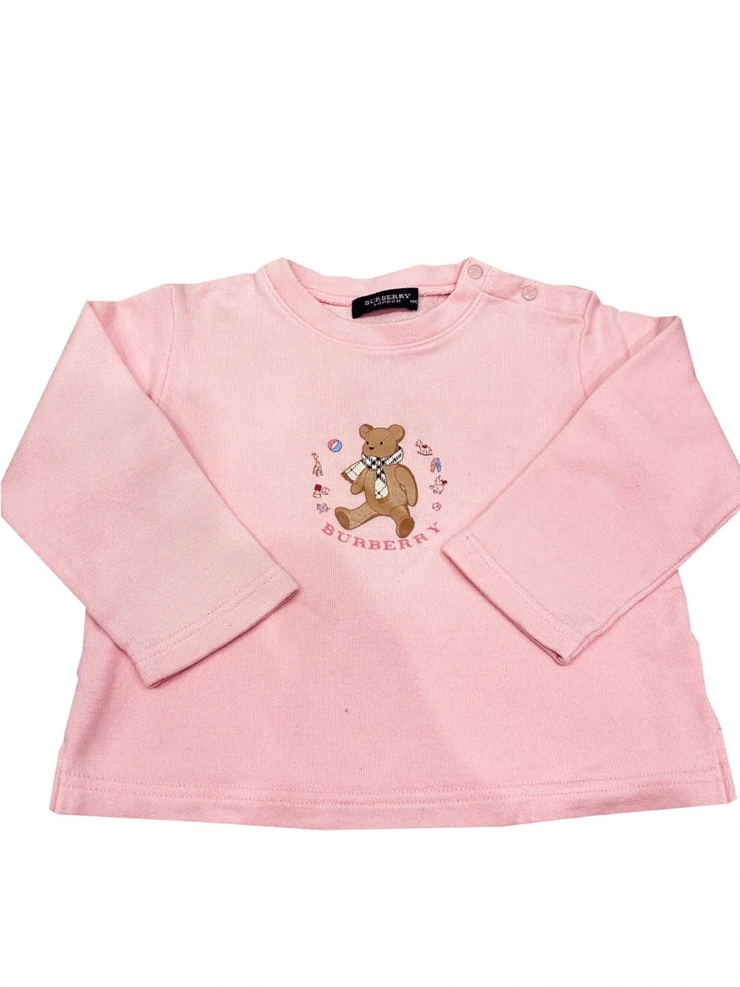Super cute Burberry baby sweatshirt in a lovely shade of pink! It features an adorable teddy bear design on the front. Perfect for keeping your little one cozy and stylish.