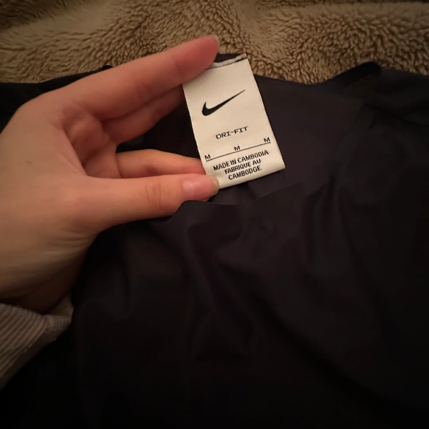 Selling a Nike Dri-FIT long sleeve top in size medium. It's a sleek black colour and in great condition. Perfect for workouts or layering!