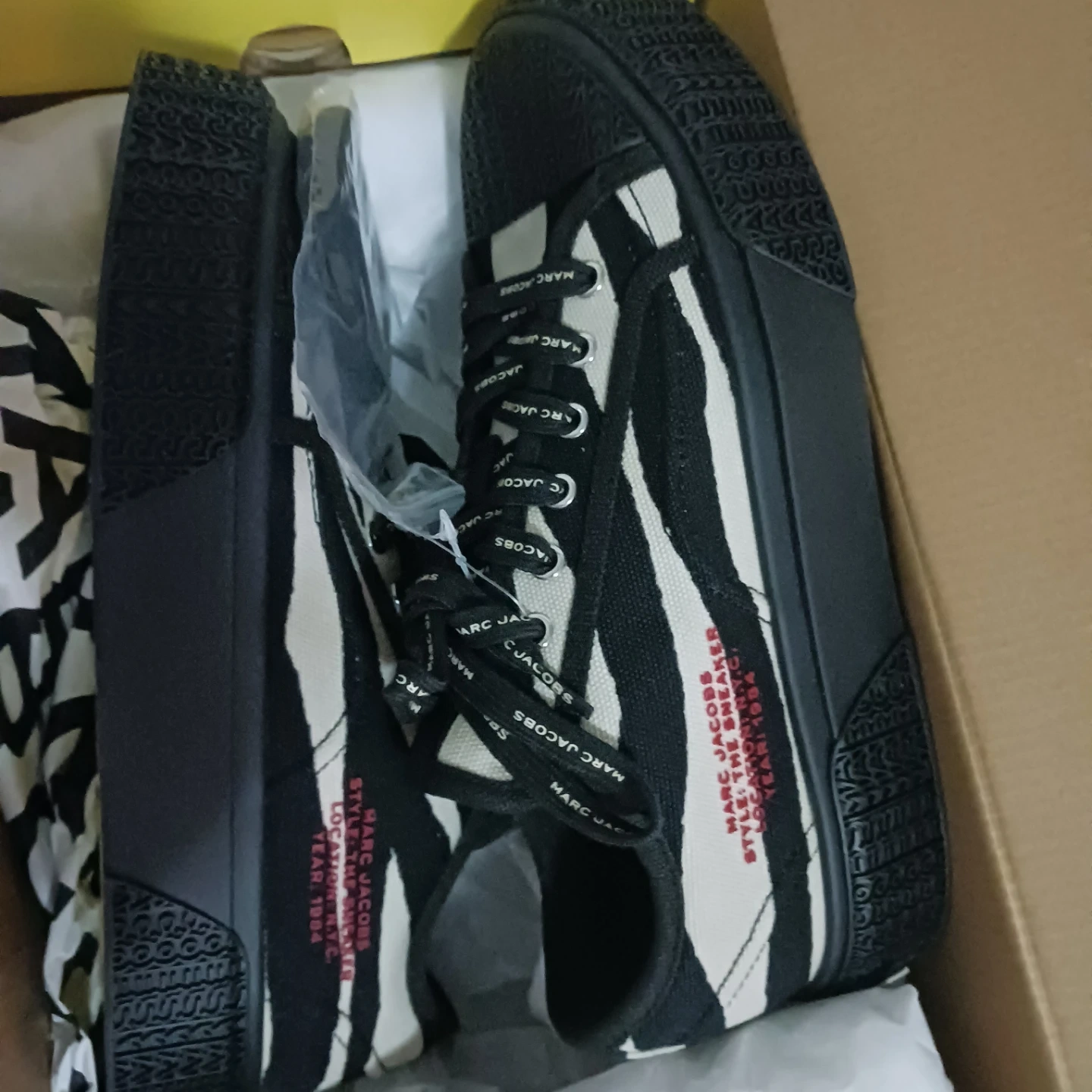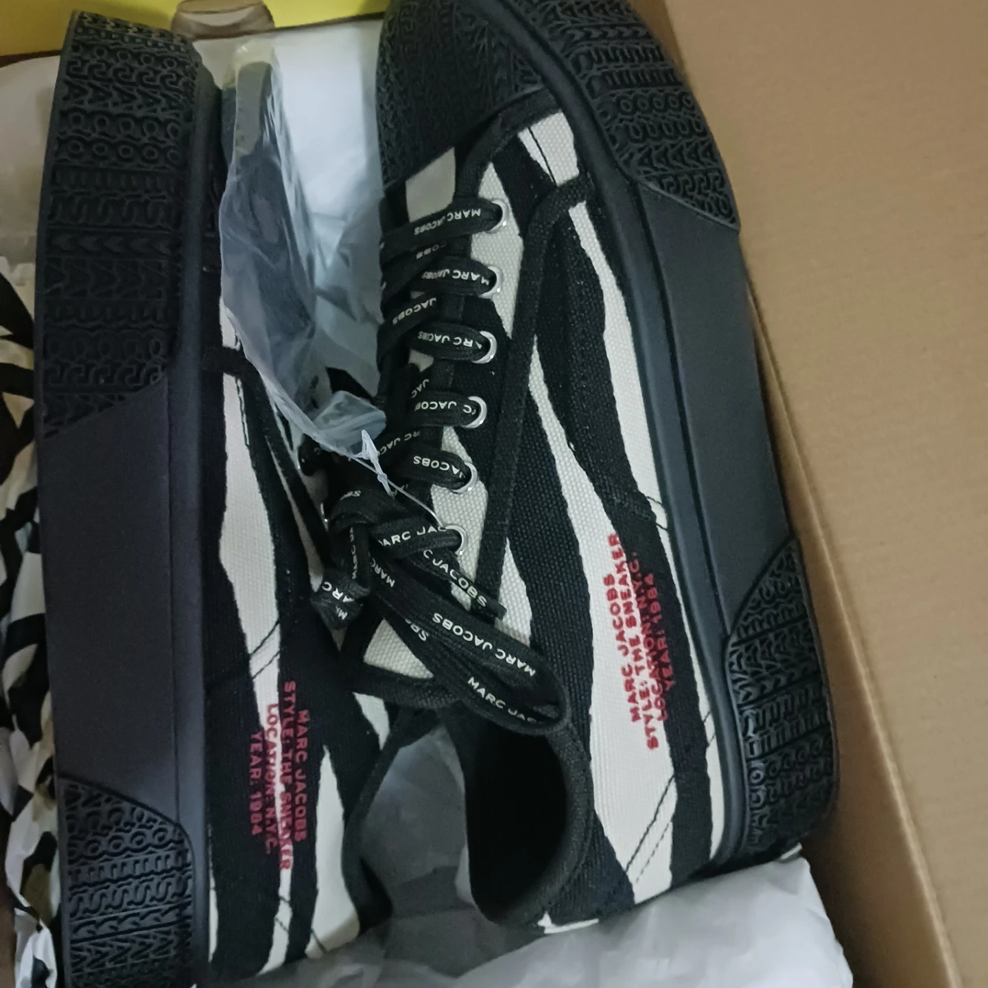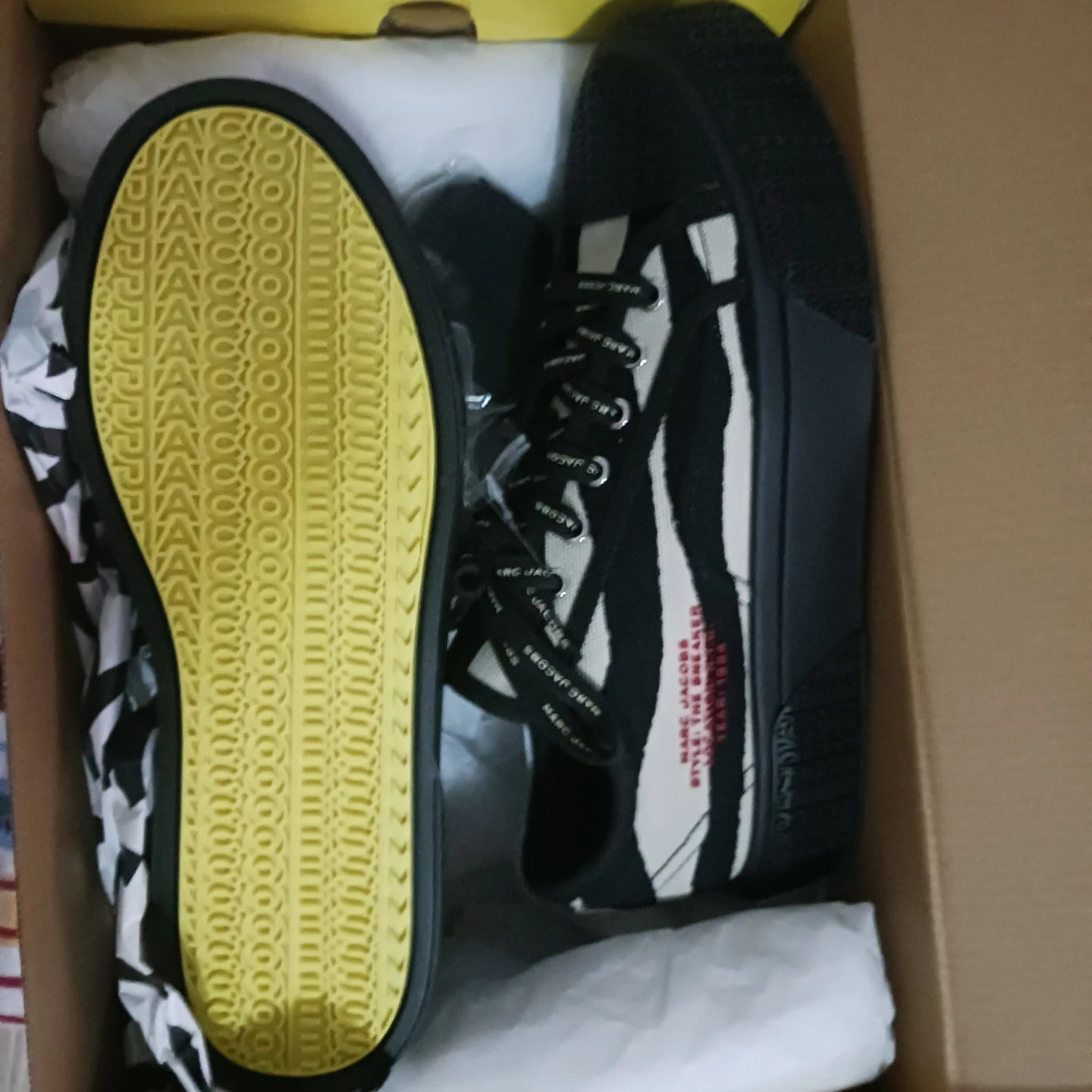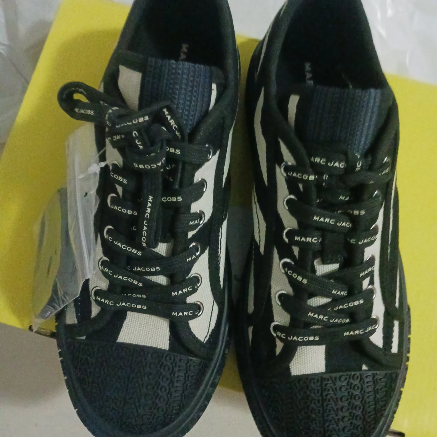These are a pair of new Marc Jacobs "Style: The Sneaker" shoes. They are black and white and come with the original box