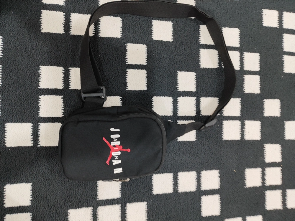 Selling a Jordan waist bag in black! It's in great condition and perfect for carrying your essentials. The iconic Jordan logo is embroidered on the front