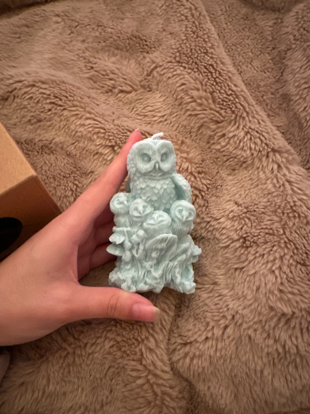 Selling a cute owl candle! It's handcrafted in Canada by a family-owned business and made in small batches with care. The box says it's made with 100% pure beeswax. It is a non-toxic, eco-friendly candle packaged in 100% recycled materials. Burning instructions are enclosed so you can enjoy the pure, natural scent of beeswax