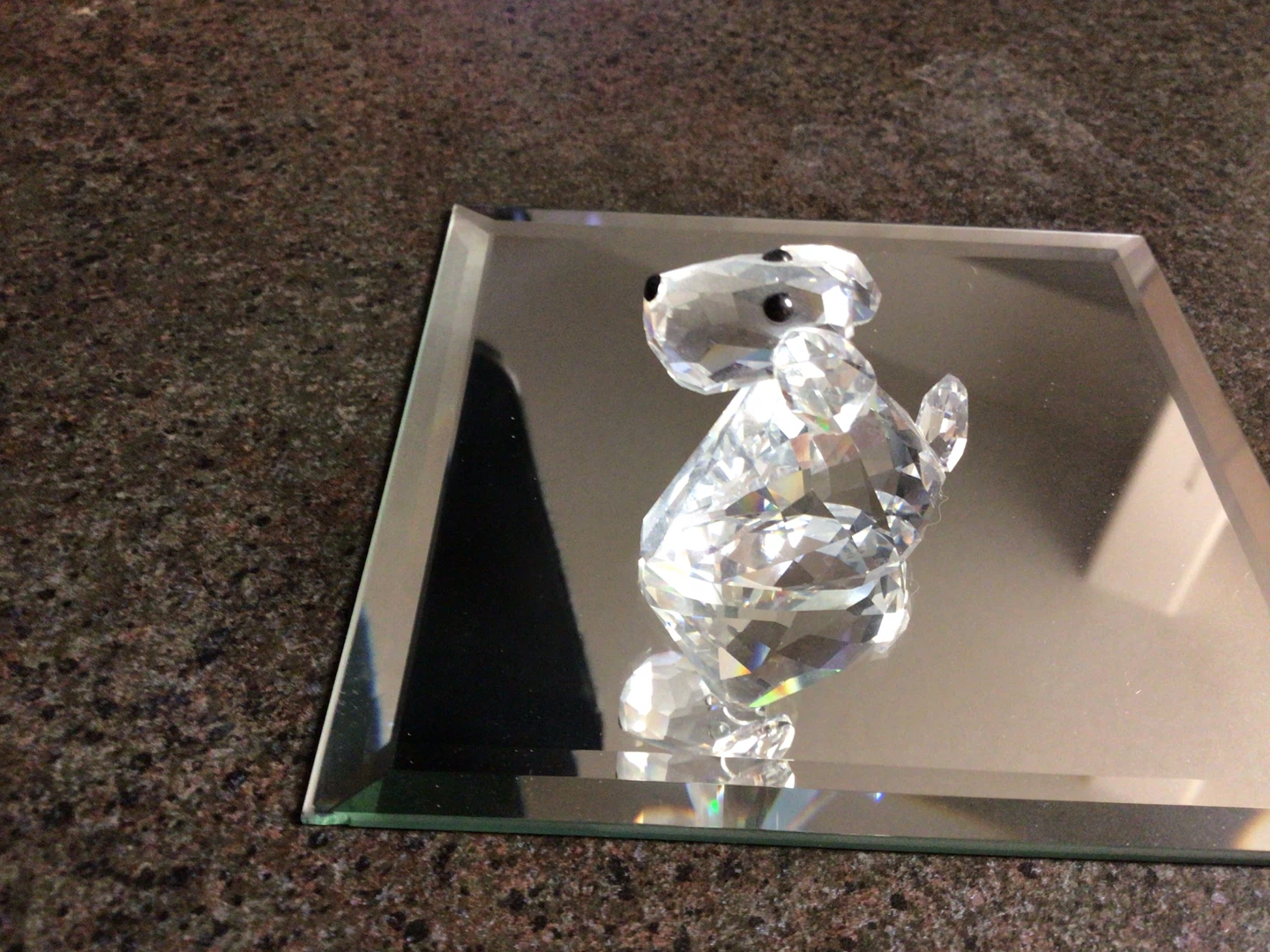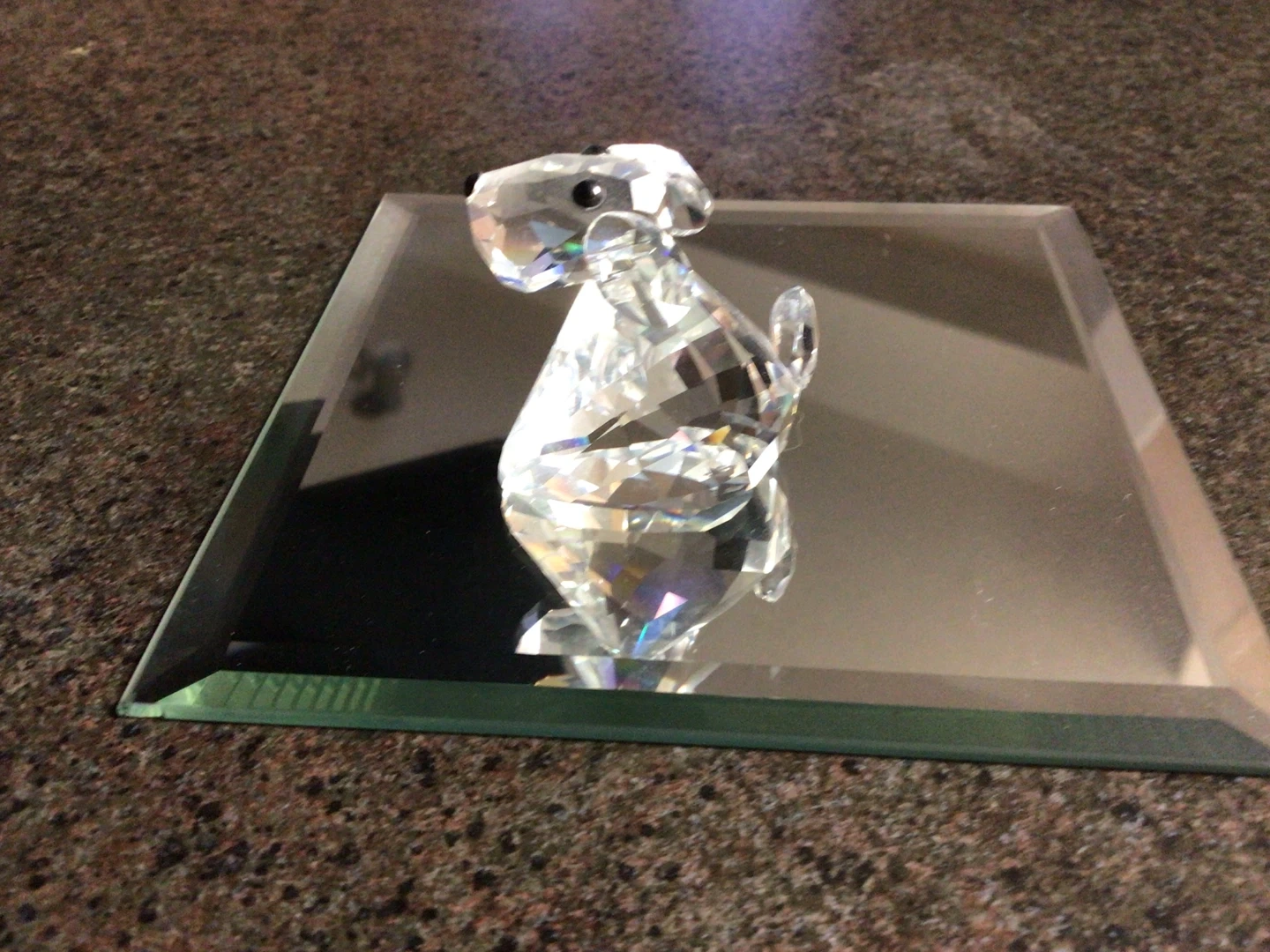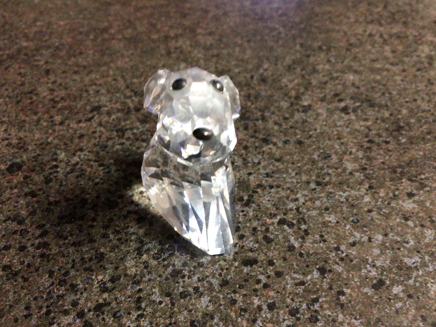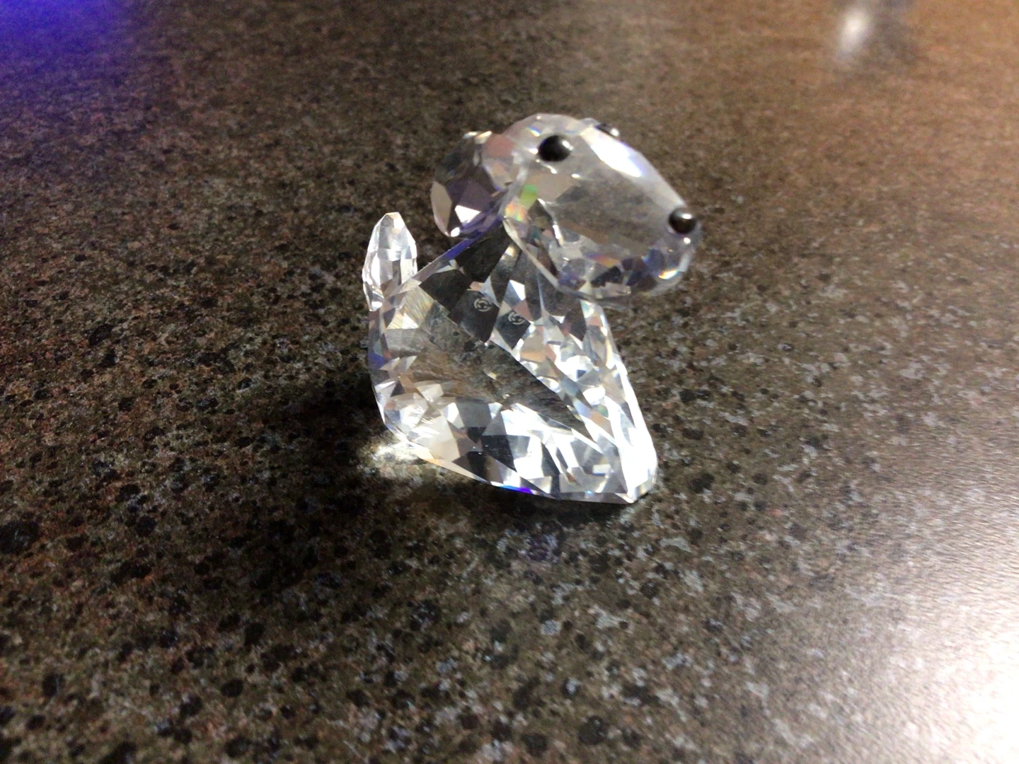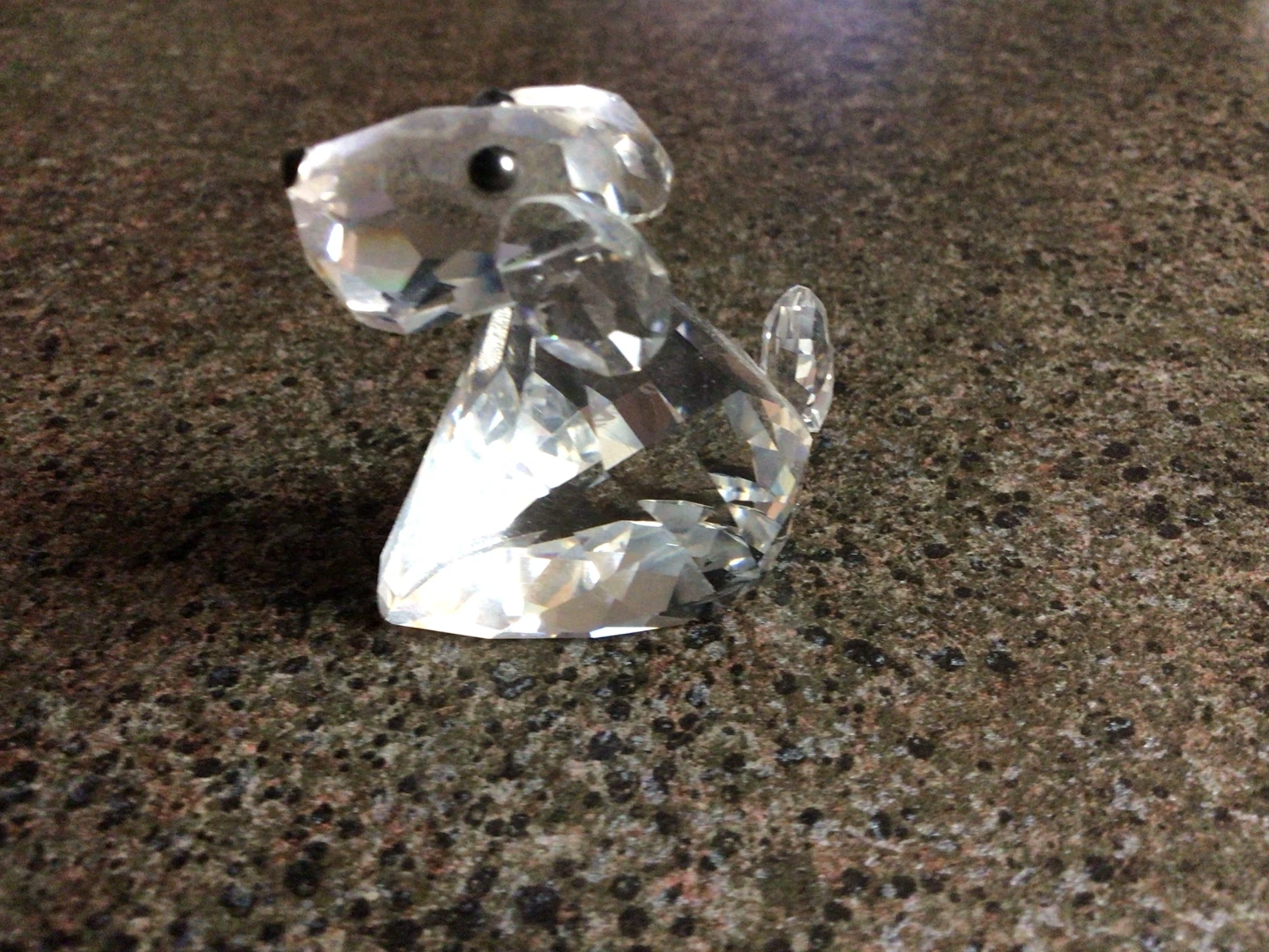 Here's a cute little Swarovski crystal dog figurine! It's in great shape and would look lovely on a shelf or desk. It's a charming piece for any collector or dog lover