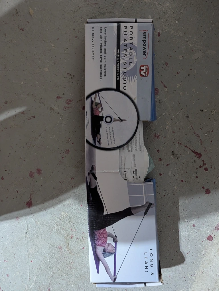 Empower Portable Pilates Studio with workout DVD! It's a great way to lose inches and burn calories fast with Pilates-style exercises. No heavy equipment needed. Includes 3 incredibly fun, effective workouts for all fitness levels. Comes in the original box!