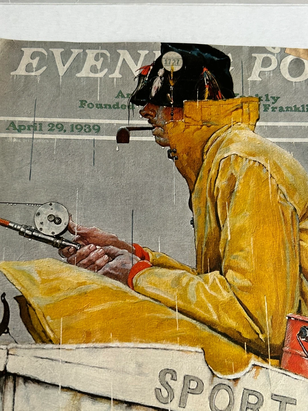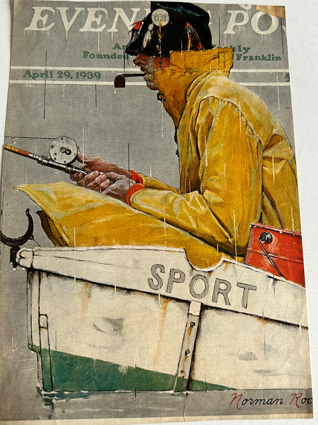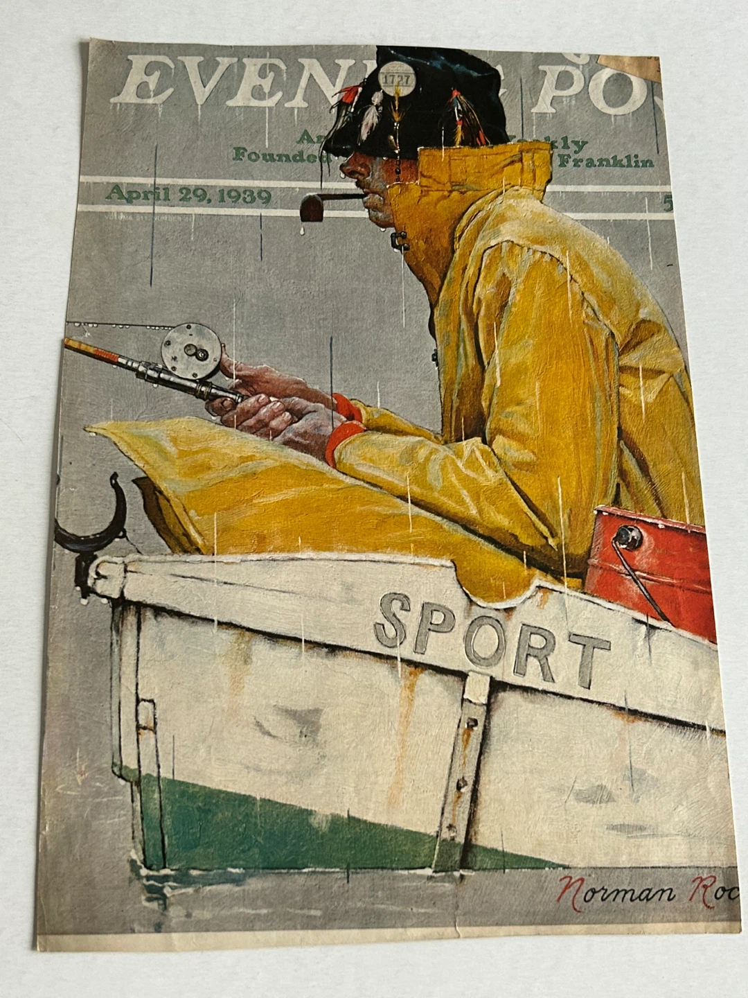 1939 Sport or Man in Fishing Boat by Norman Rockwell illustration vintage ad magazine Art East York This is a collectible original issue of The Saturday Evening Post magazine from April 29, 1939, featuring the cover illustration titled "Sport" (also known as "Man in Fishing Boat") by Norman Rockwell Somewhat trimmed as seen Original not reproduction 16.00 Can mail out for 6.00 Otherwise Flexible re pickup Elmsdale Road M4J 3M3 Donlands O'Connor East York Don Mills south exit off DVP Just south of Leaside bridge