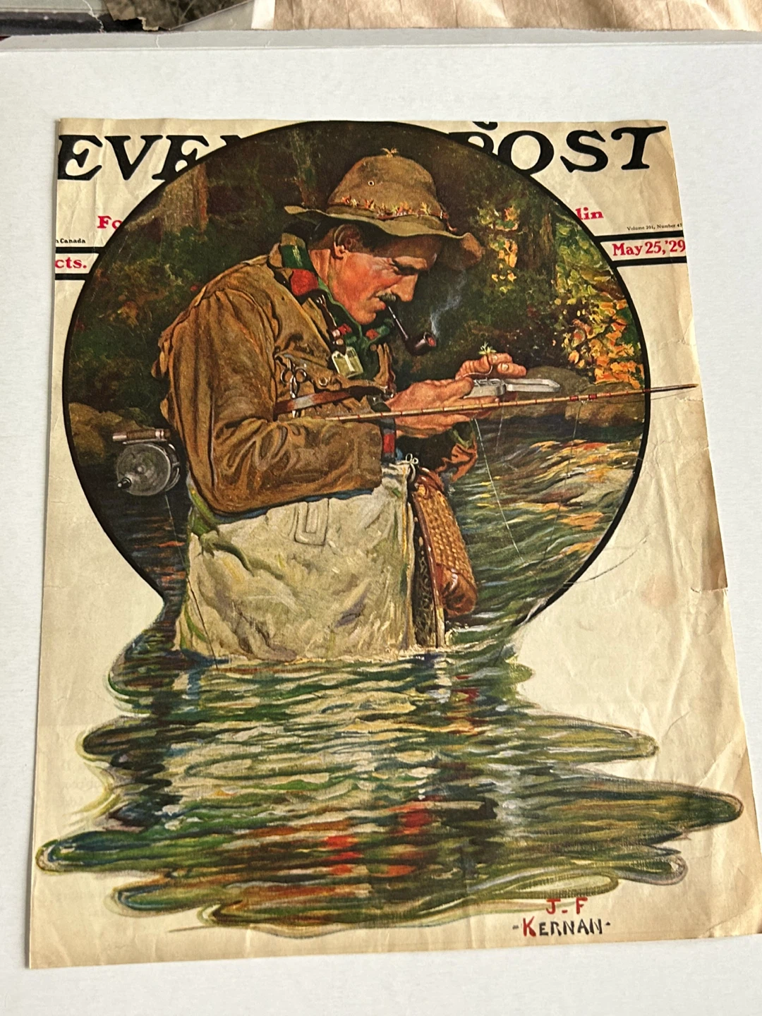 1929 vintage art fishing ad Saturday Evening Post illustration