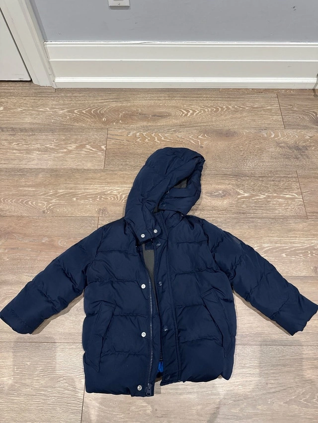Keep your little one warm with this Gap Kids puffer jacket, featuring a cozy hood and durable construction. This jacket is in good condition and ready for new adventures. Here are some additional details: