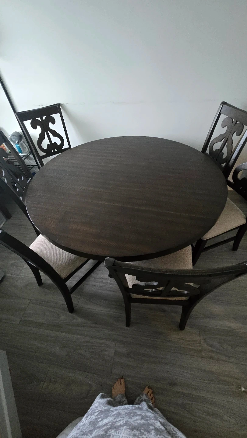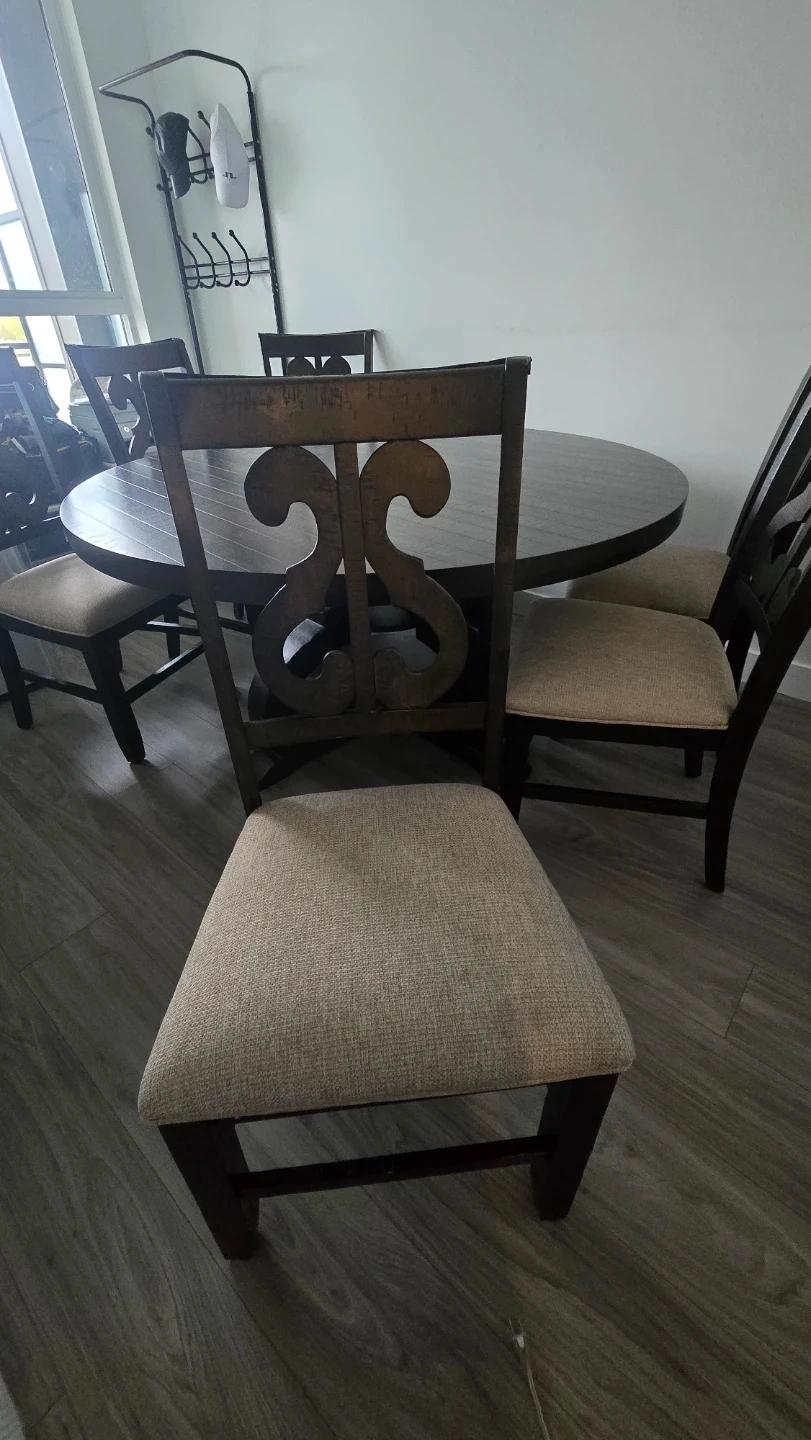 Round Wooden Dining Table with 6 Chairs