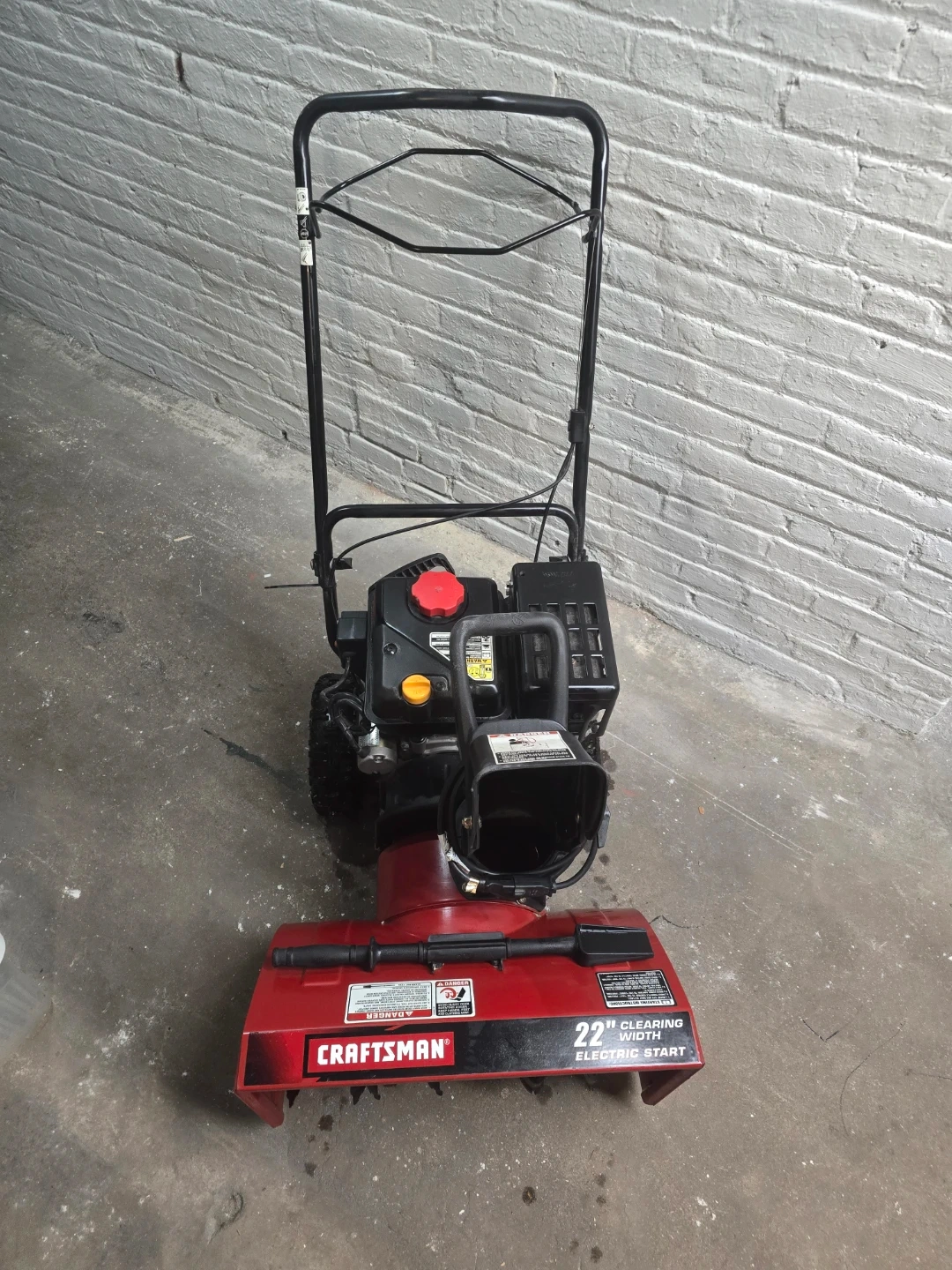 Selling a Craftsman 22" snow blower with electric start. It's ready to help you clear your driveway or sidewalks this winter season. This snow blower has a 22-inch clearing width.