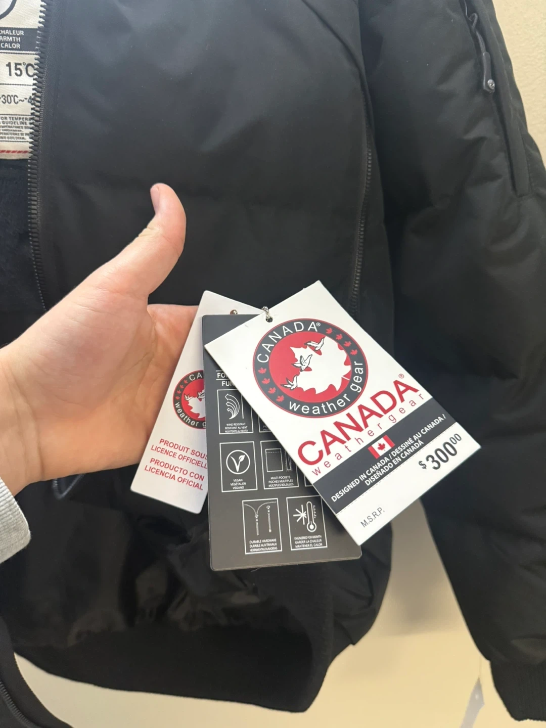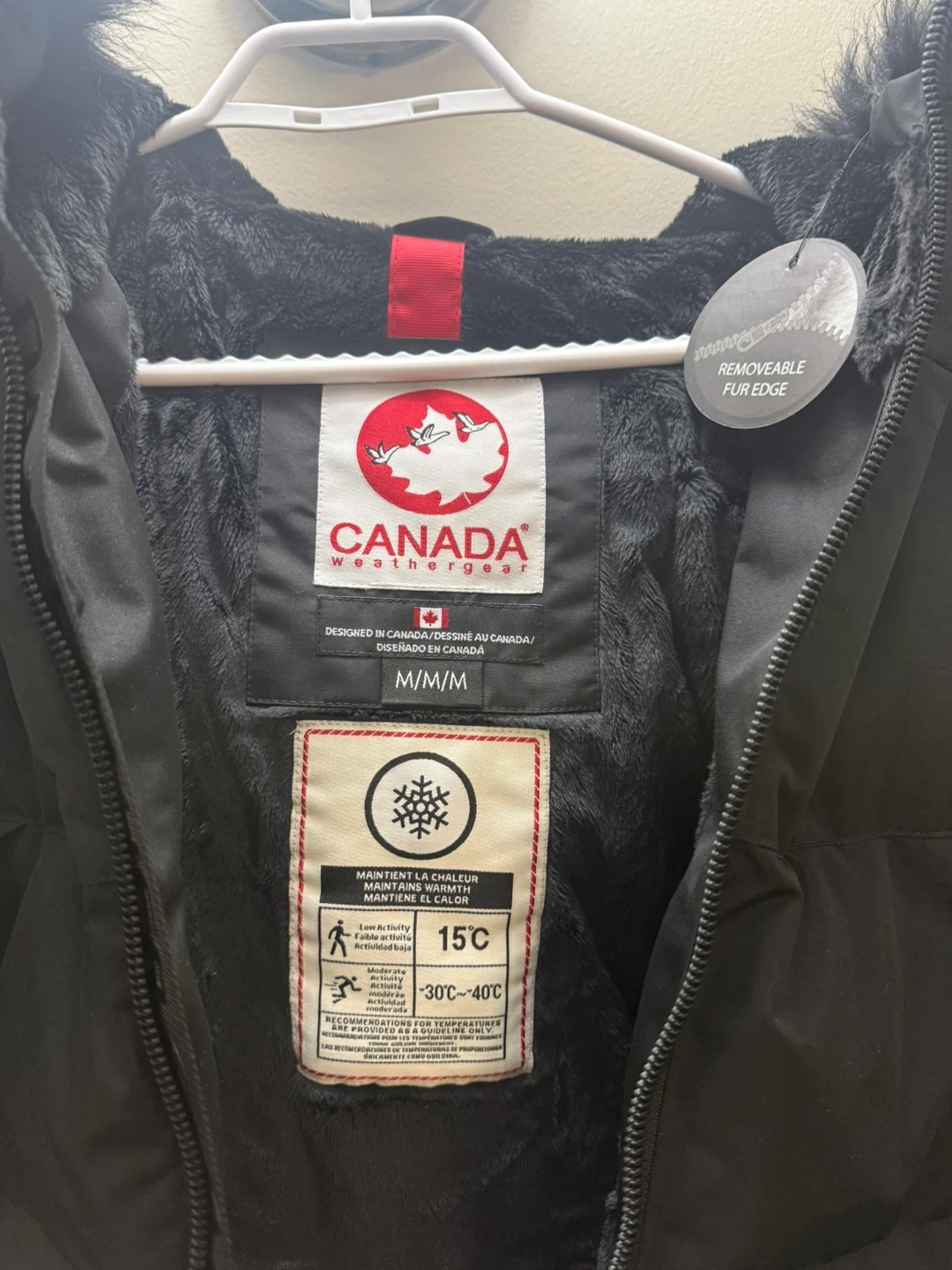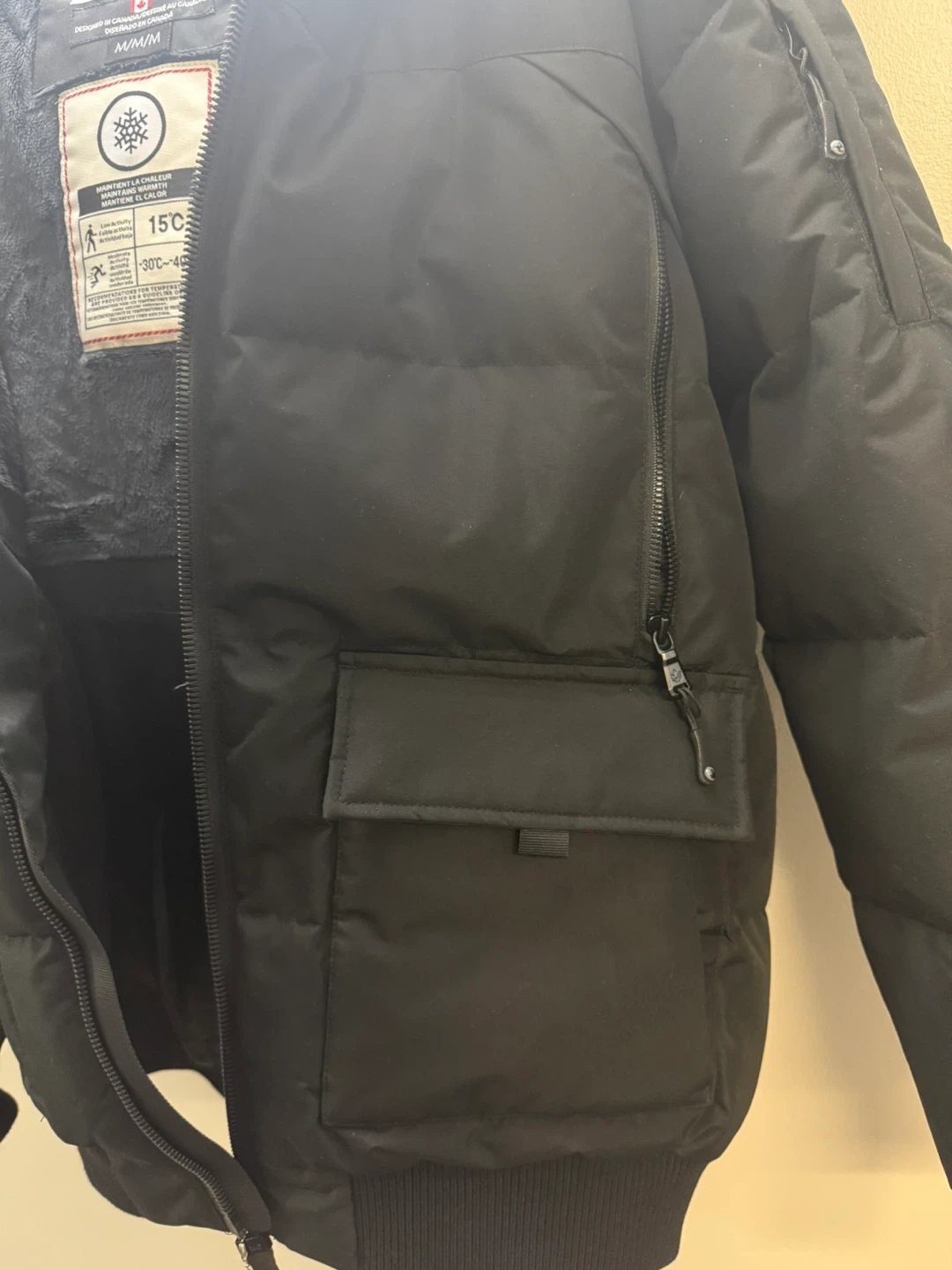 I'm selling a black winter jacket from Canada Weather Gear. It's a size M. This jacket is perfect for keeping warm in temperatures as low as -30°C! Also brand new, never worn.