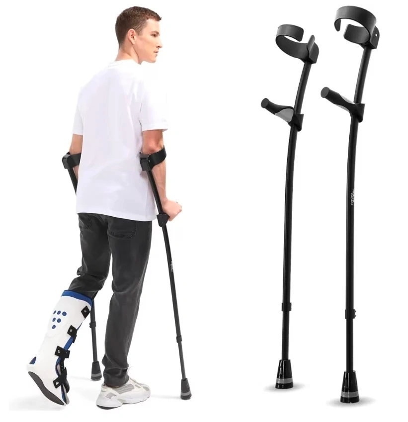 These Health Bazaar crutches are designed for comfort and convenience! The rotatable C-shape cuff makes many activities possible while using the crutches, such as drinking coffee, using your phone, and even hugging your loved ones. The grips can be adjusted up and down to suit different forearm lengths. They also feature a magnetic grip tip and a high-quality alloy shaft