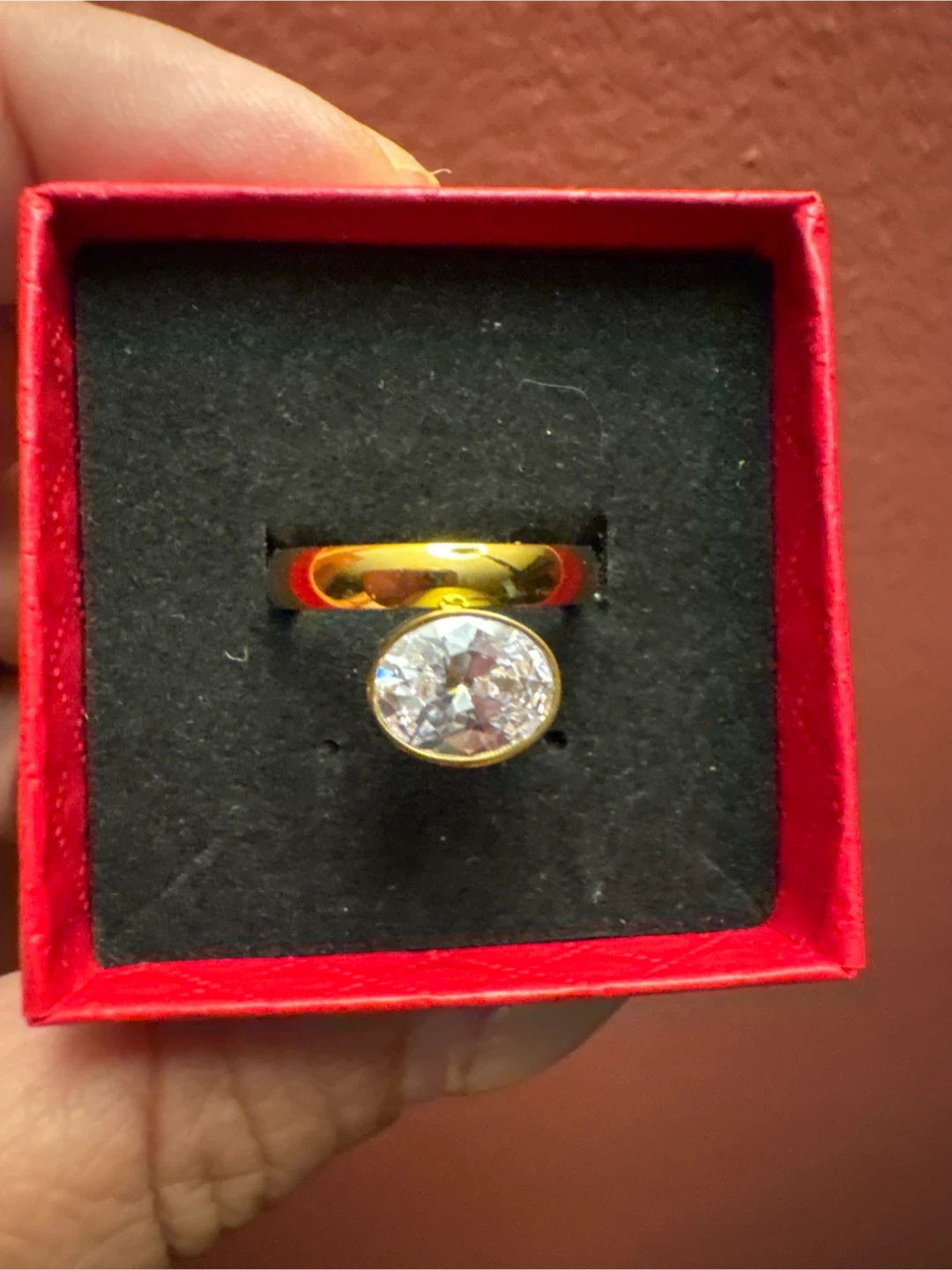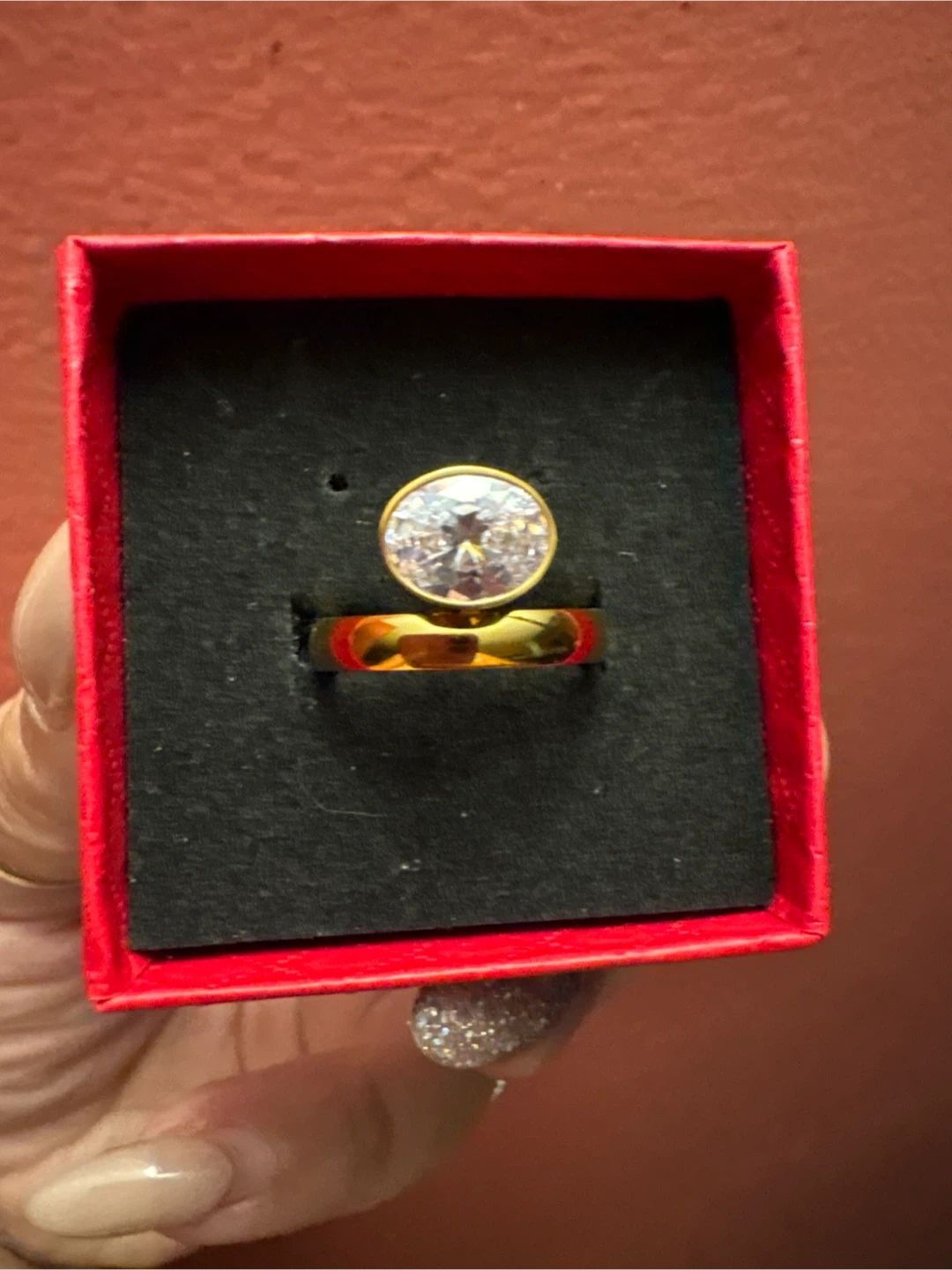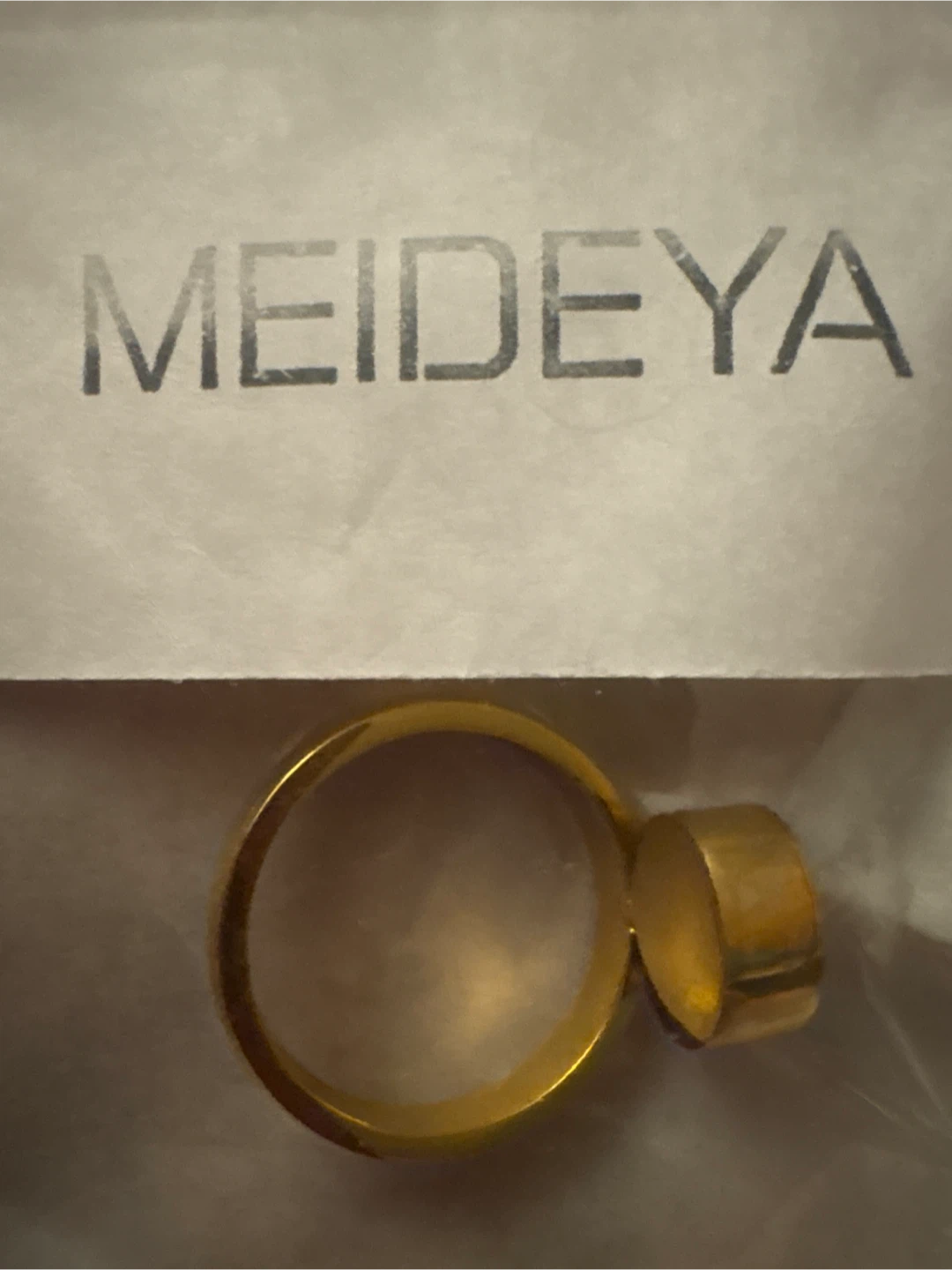 Selling a MEIDEYA 18K Gold Stainless steel gold ring. It comes in its with pouch and box. New