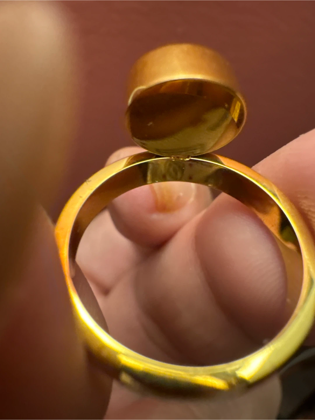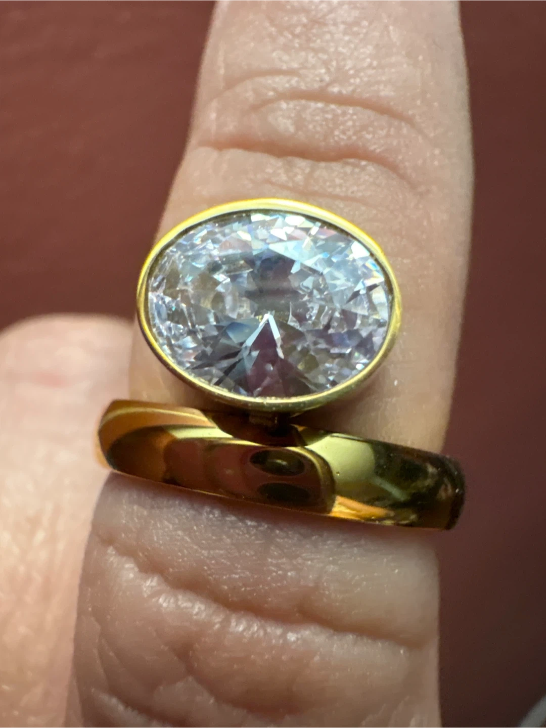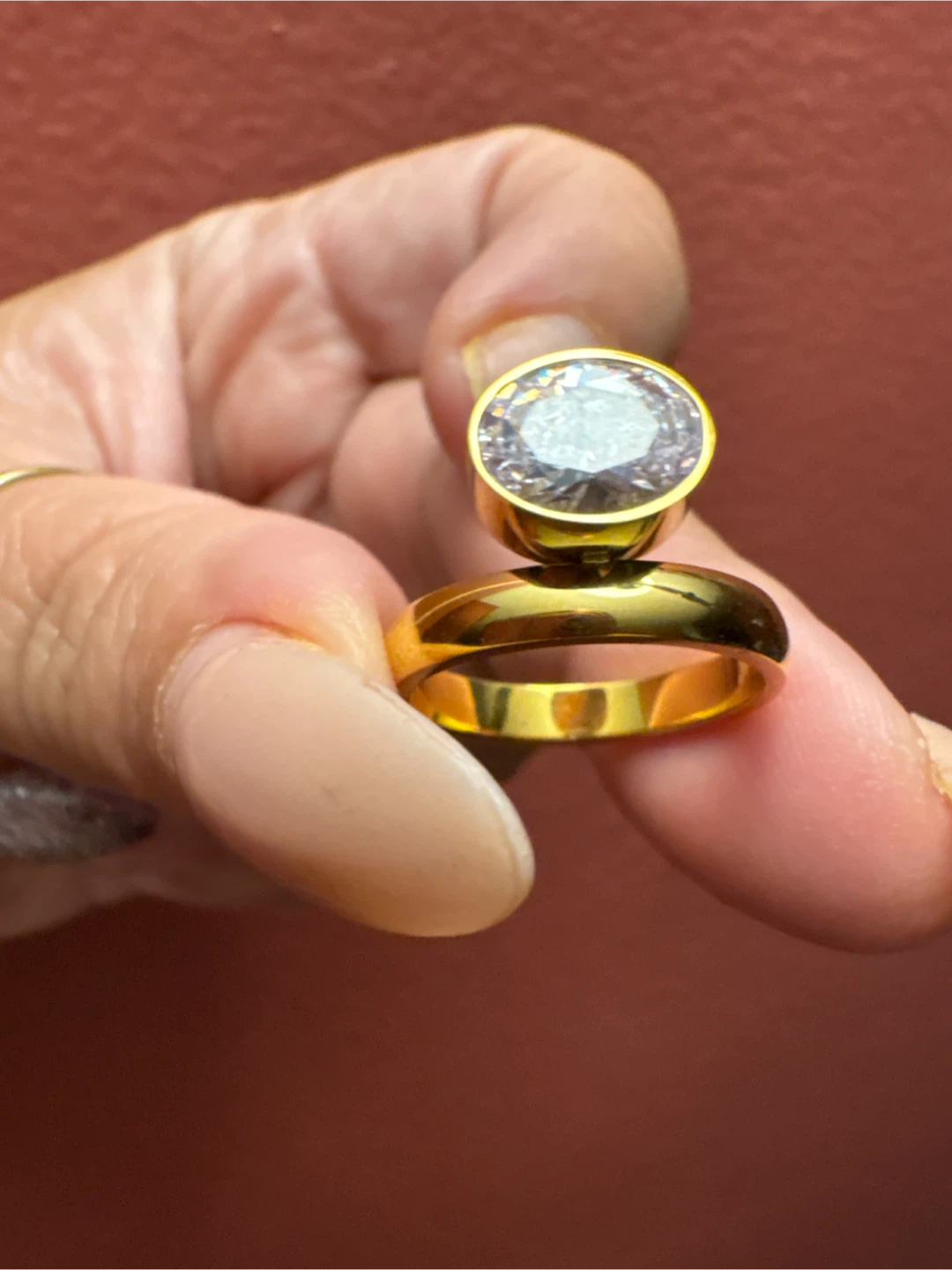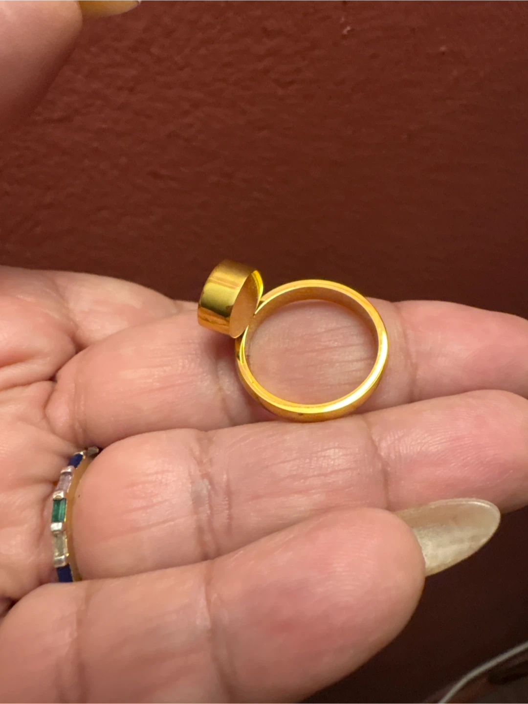 Selling a MEIDEYA 18K Gold Stainless steel gold ring. It comes in its with pouch and box. New