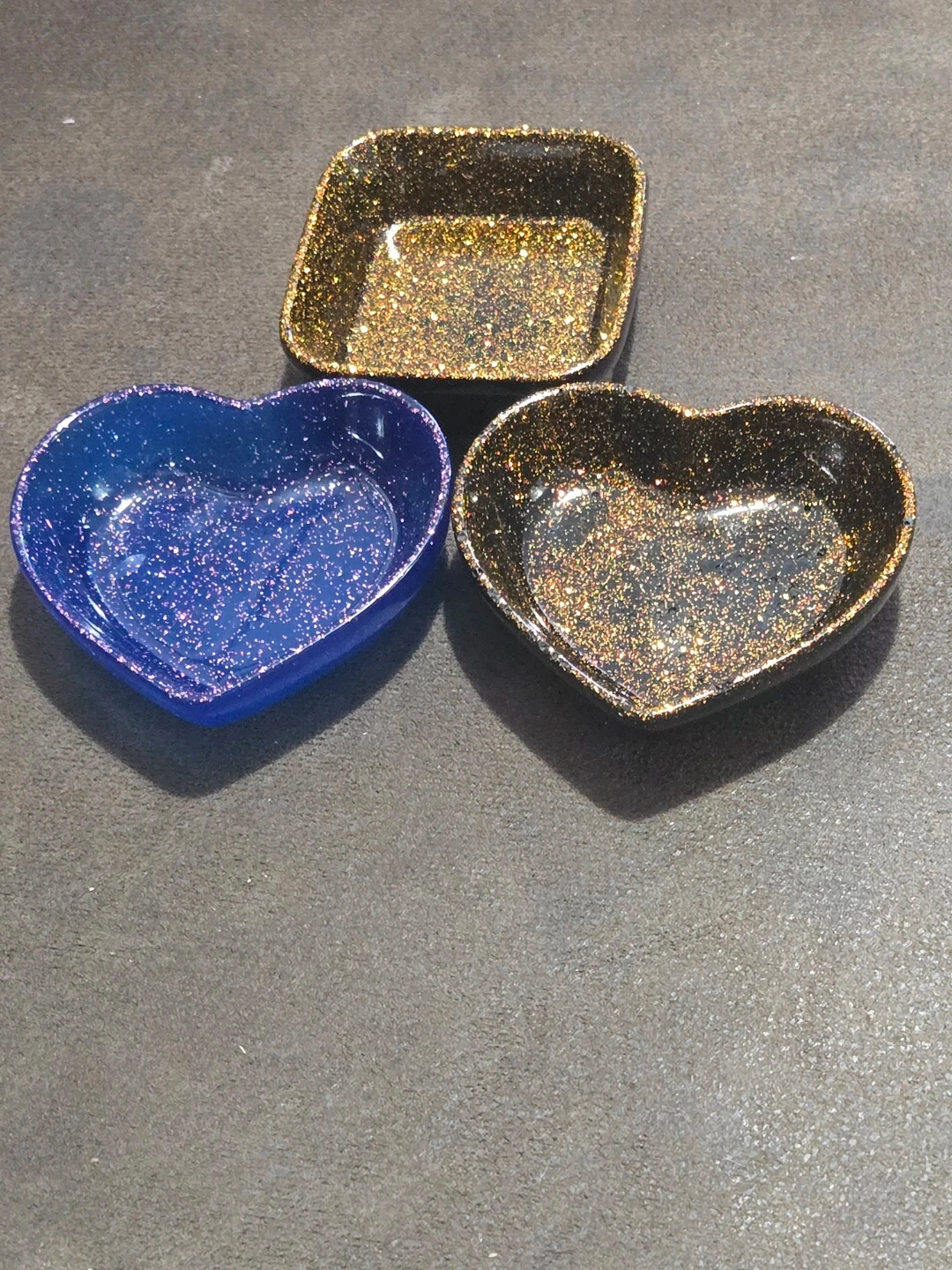 Selling a set of handmade resin trinket dishes. These are perfect for holding jewelry, keys, or other small items. Each dish has a unique design and colour, adding a touch of sparkle to any space!