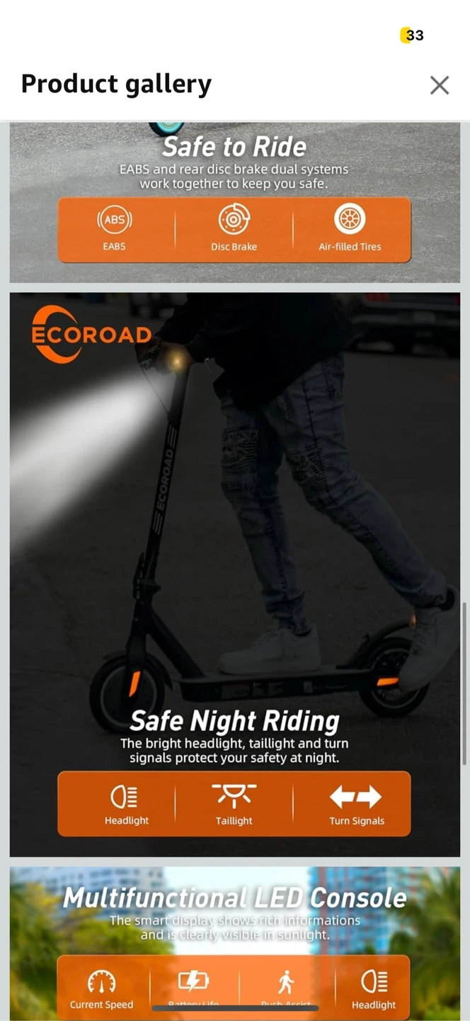 Special feature Cruise Control, Dual Braking System, Foldable, Lights, Lightweight