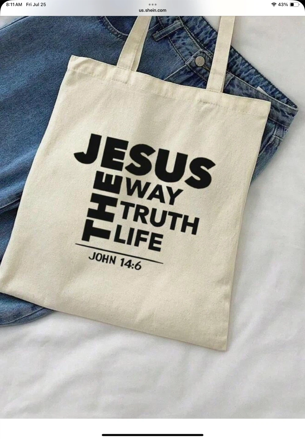 I have a variety of religious tote bags available! They all have different sayings and designs. Perfect for carrying books or groceries