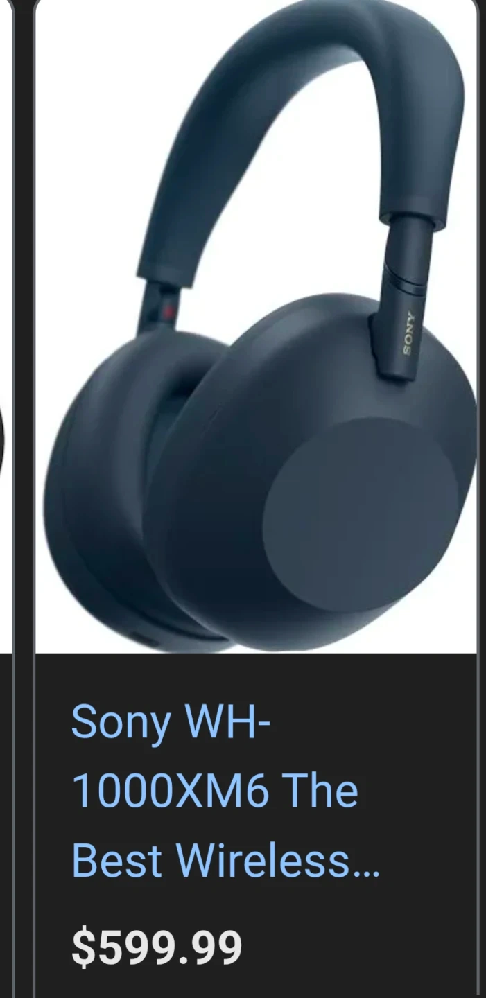 Selling a pair of Sony WH-1000XM6 wireless headphones. They are in good condition and ready for a new owner. Originally priced at $599.99.