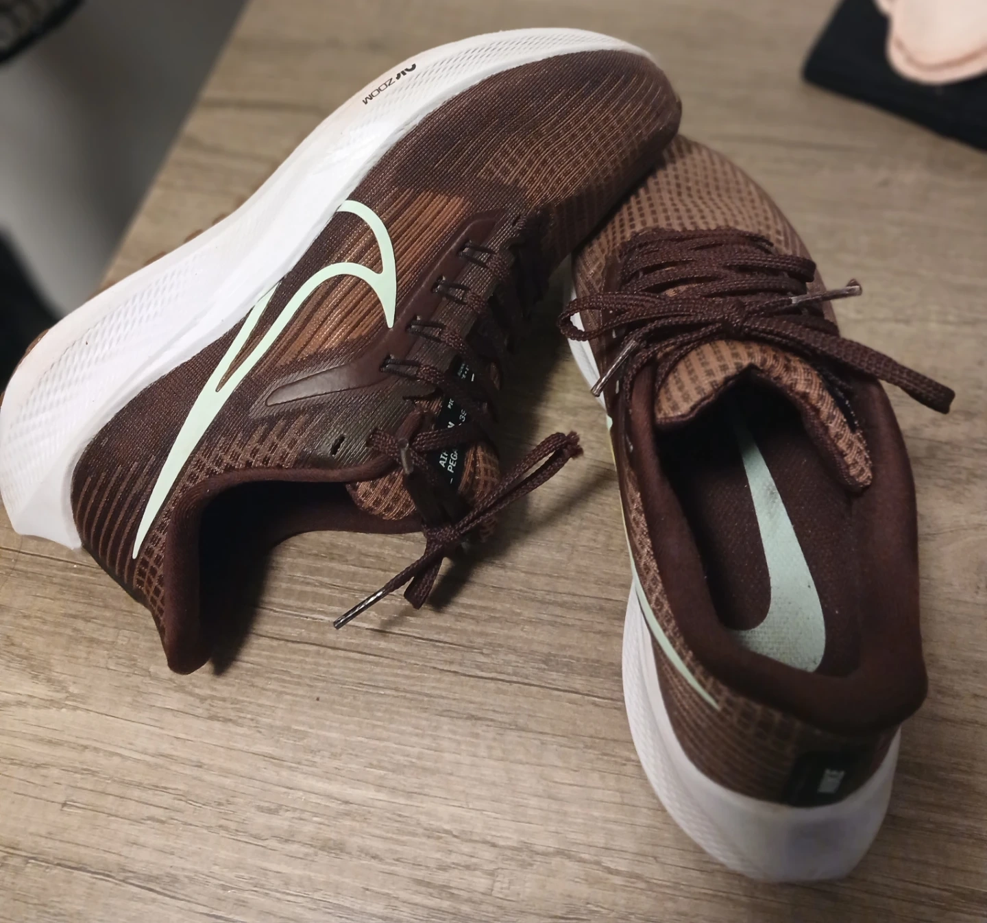 Selling a pair of Nike Air Zoom Pegasus 39 running shoes in a nice brown colour! They are in great condition and ready for someone who wants a comfortable and stylish running shoe