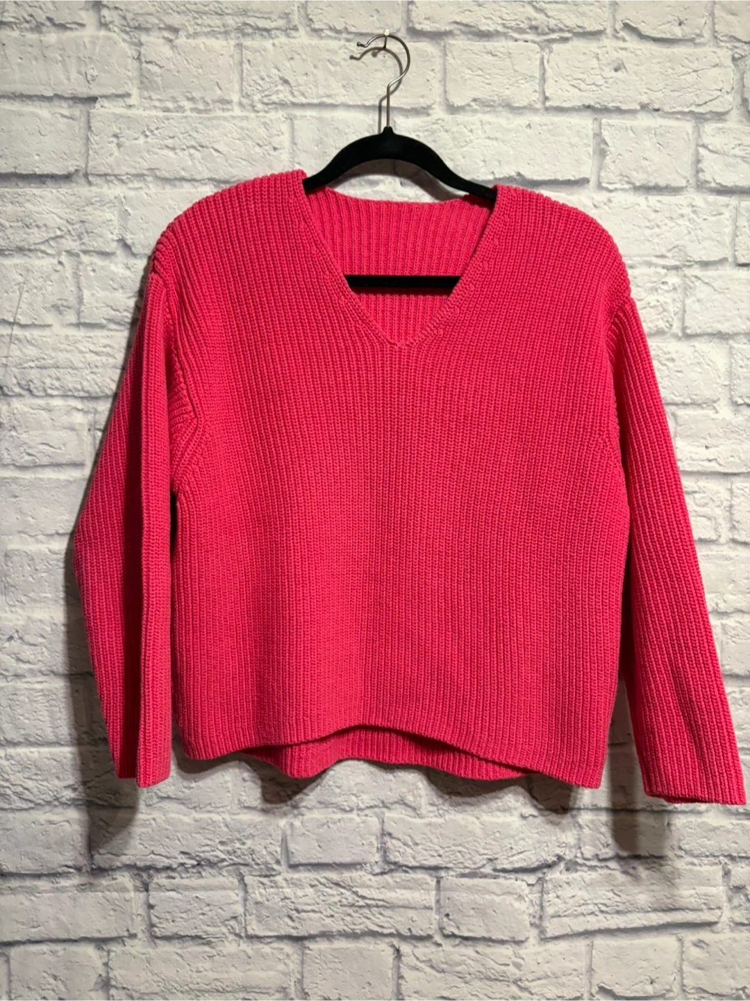 Here's a bright pink sweater from H&M, retail was $49.99. It's made of 100% cotton and is perfect for adding a pop of colour to your wardrobe. No size tag, fits like a small. Excellent condition. Pick up only.