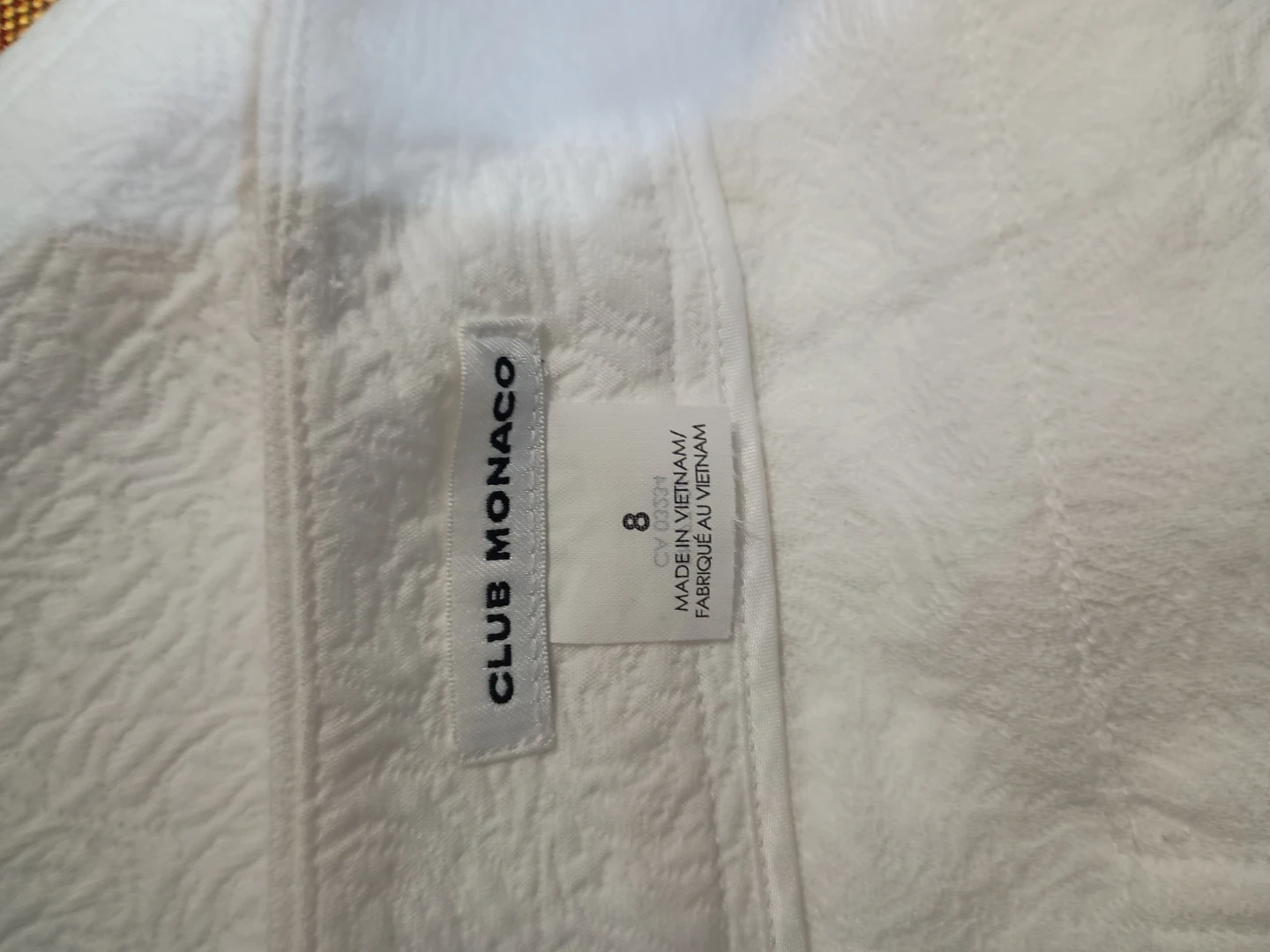 Selling a pair of Club Monaco white pants in size 8. They are in great condition! The material has a subtle texture. 100 coton Measurements are shown in the photos
