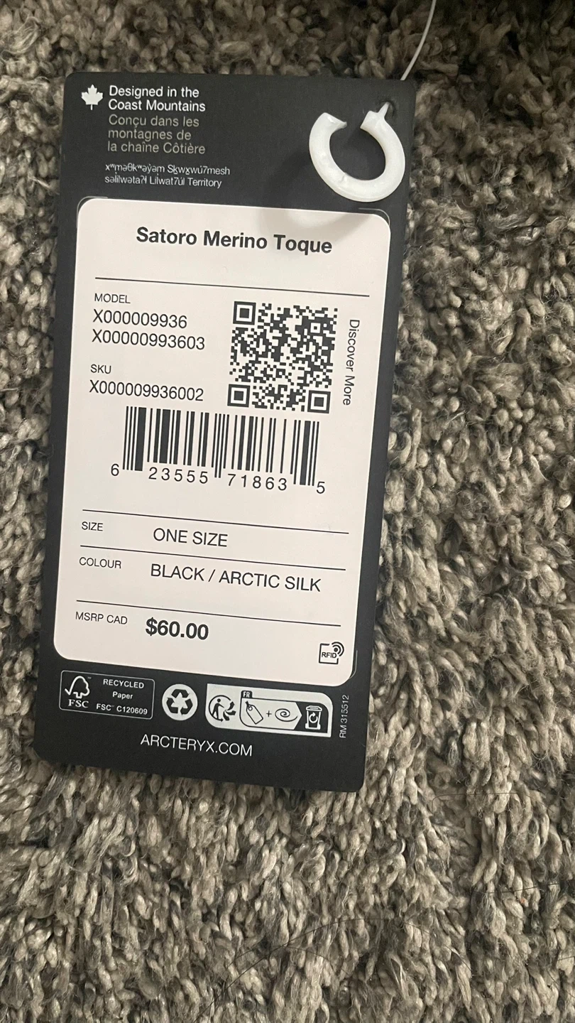 Selling a brand new Arc'teryx Satoro Merino Toque! It's black with Arctic Silk colour. Size is one size fits all. Originally retailed for $60 CAD. Never been worn! I got it as a early Christmas present but I would prefer the beanie.(am up for trades)