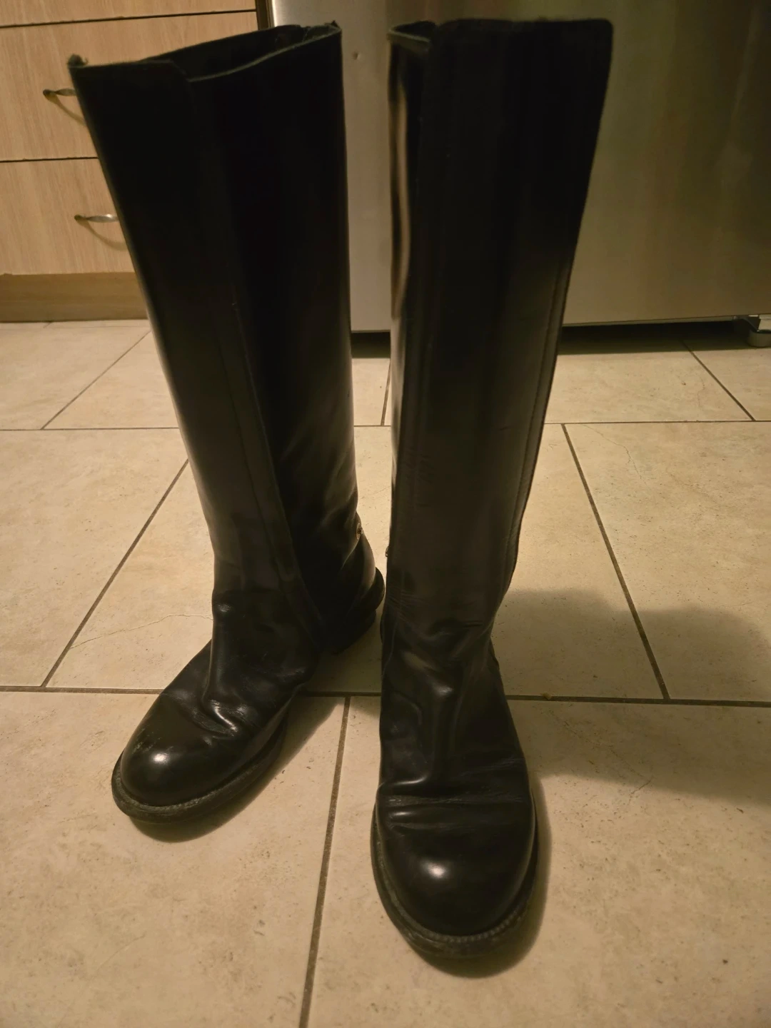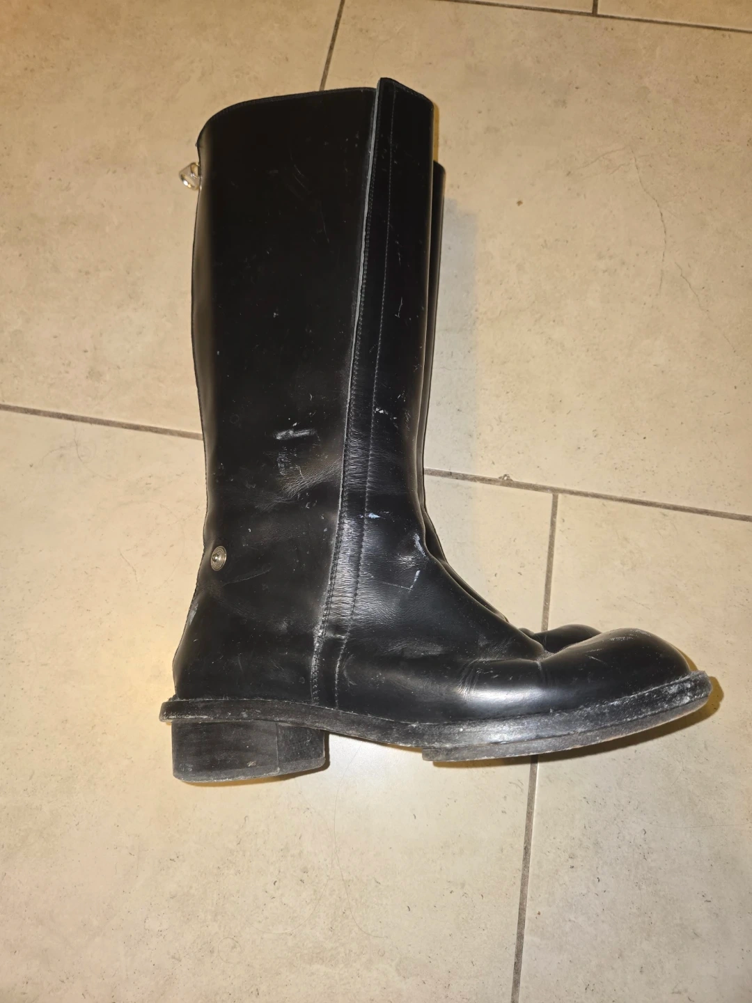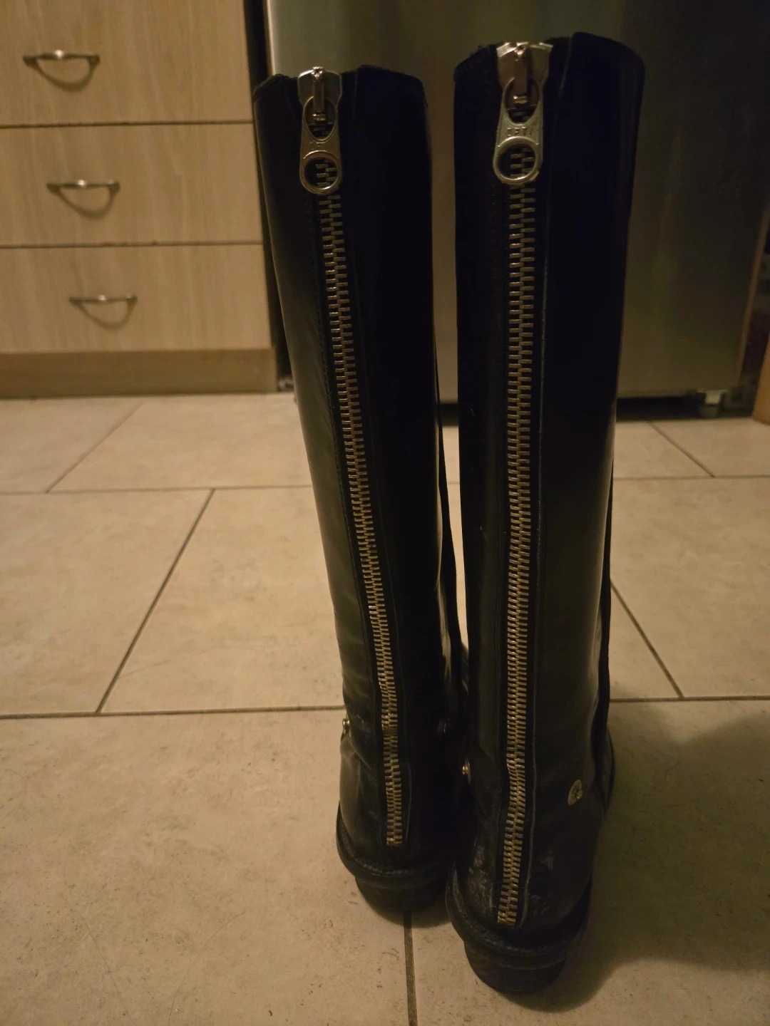 Selling a pair of Chloe black leather riding boots. Amazing Made in Italy quality. Reinforced "horseshoe" leather soles (see pics). They show some signs of wear, but still have lots of life left! They have a zipper in the back and are a classic style. Size 37.5 Will trade for similar quality 35.5-36.