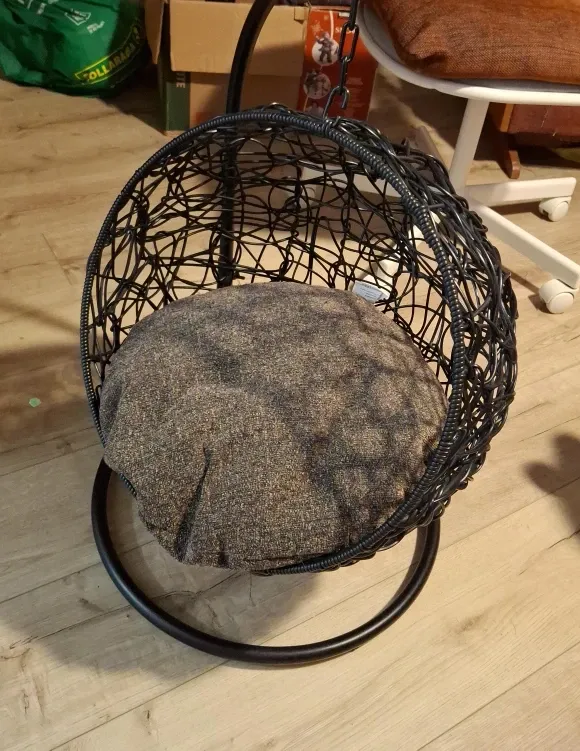 Selling a cute cat black wicker egg chair, perfect for adding a cozy touch to any room! It comes with a comfy cushion for your cat. It's in great shape and ready for a new home!