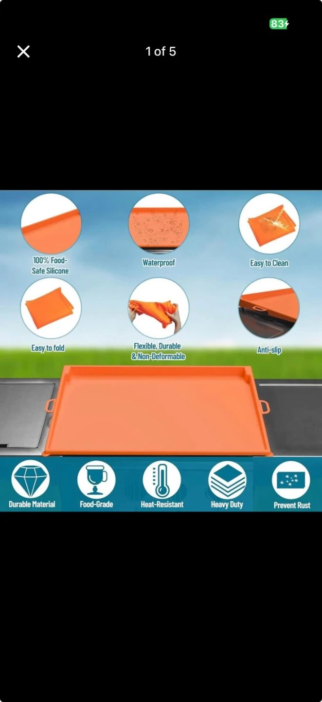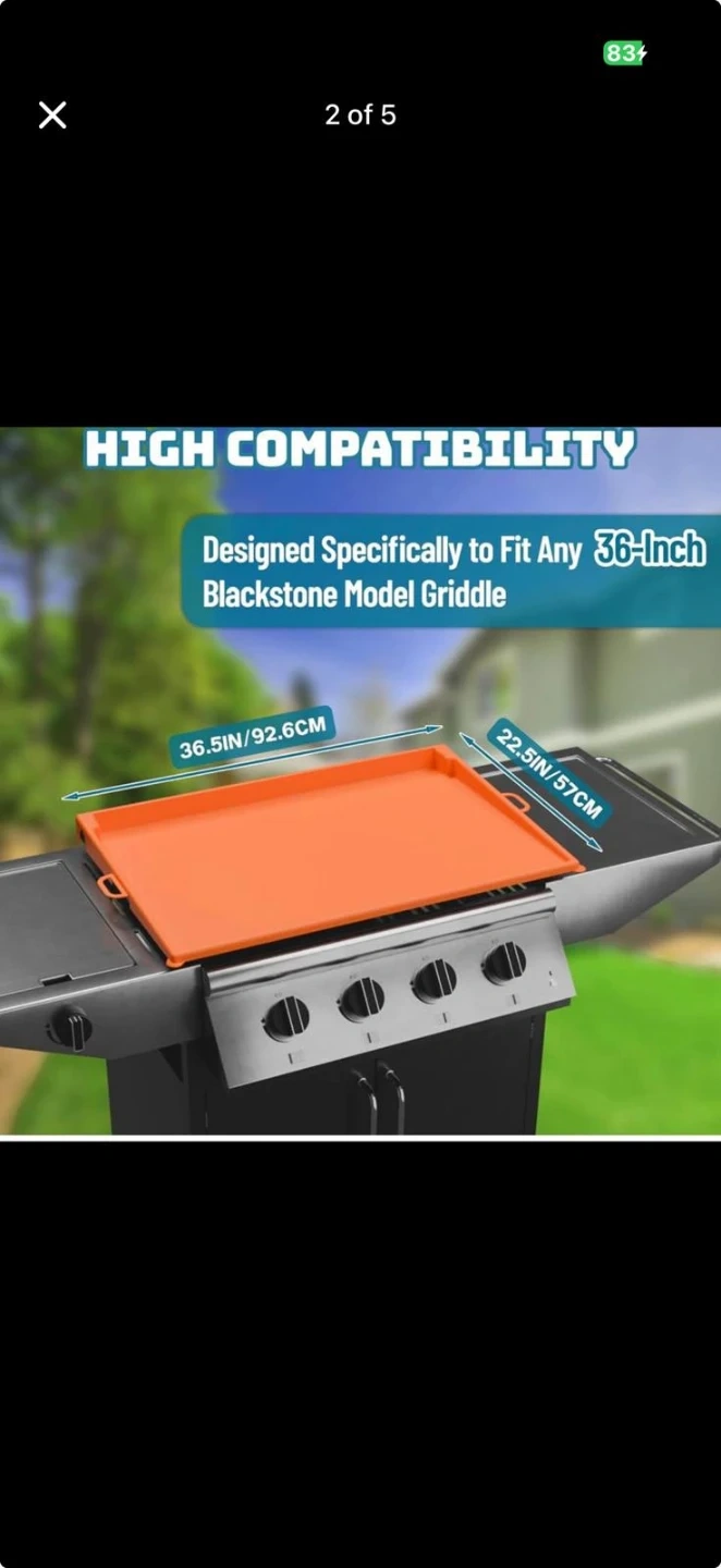 I'm selling an orange silicone griddle cover designed to fit any 36-inch Blackstone model griddle. It's made from 100% food-safe silicone and is waterproof and easy to clean. It's also easy to fold, flexible, durable, and non-deformable, with an anti-slip design. This cover is made from durable, food-grade, heat-resistant, and heavy-duty material that helps to prevent rust. Originally bought for $56.99.