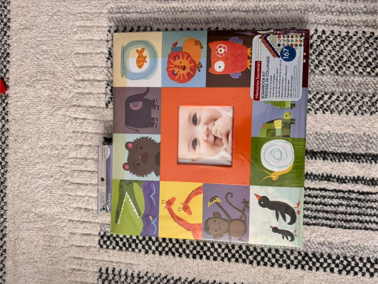 I'm selling a Memories Souvenirs Scrapbook Kit. It includes 167 stickers, 42 die-cut shapes, 93 dimensional stickers, and 10 protective sleeves. This scrapbook kit is a fun, easy, and creative way to capture your favorite memories! Plus so much more bonus items 😊