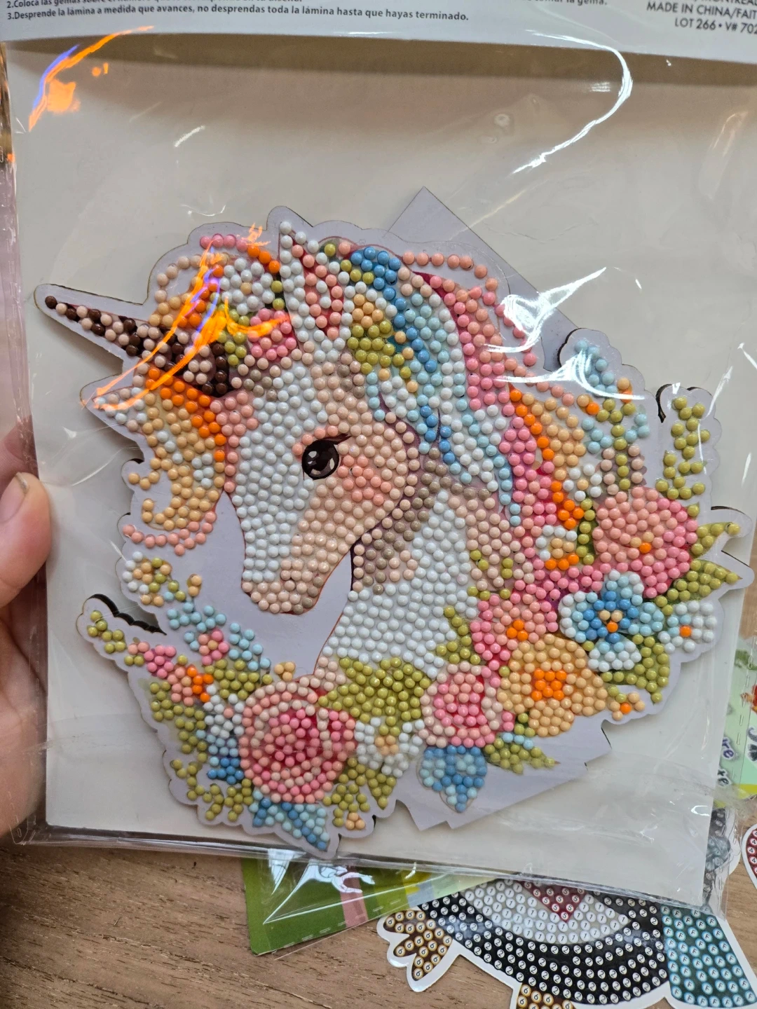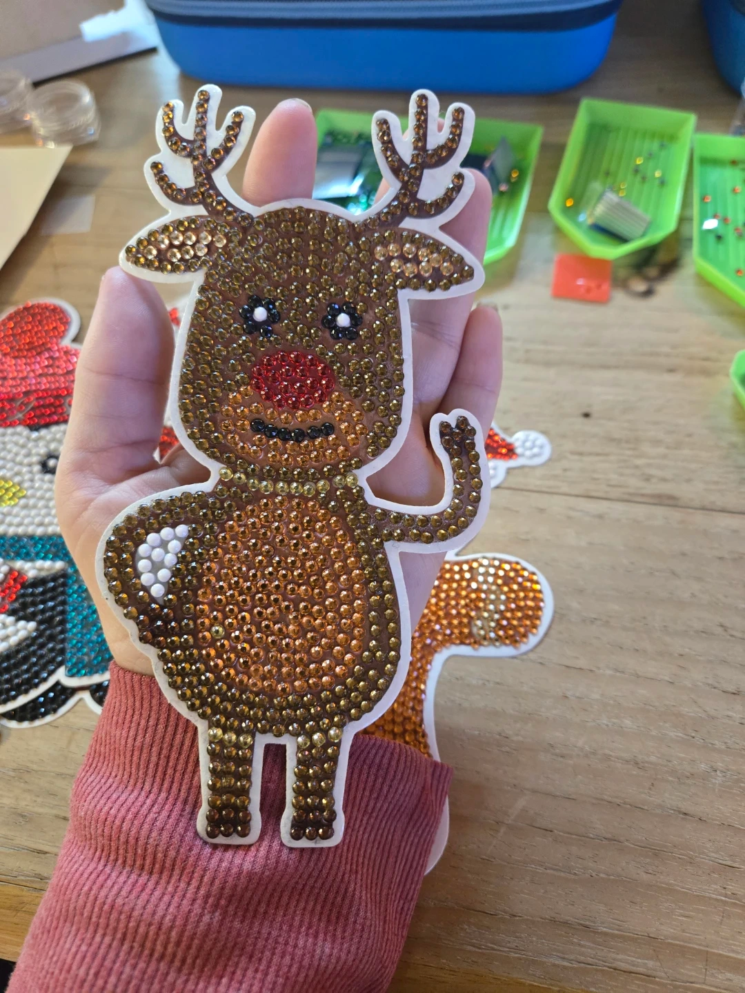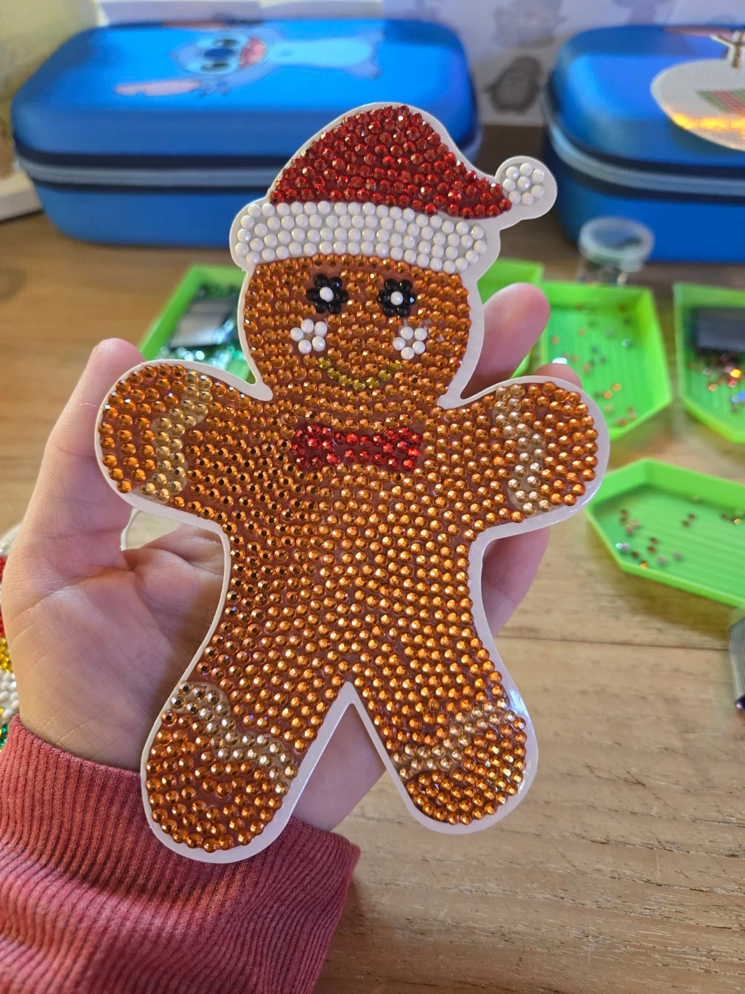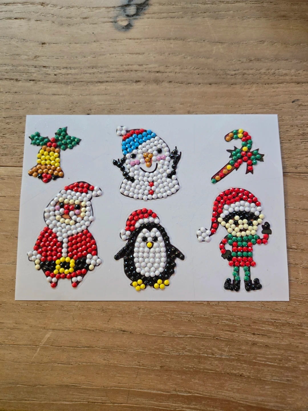 I have a bunch of cute diamond art stickers for sale! They feature a variety of designs, including a gnome, unicorn tumbler, reindeer, penguin, and gingerbread man. These are perfect gifts for loved ones.