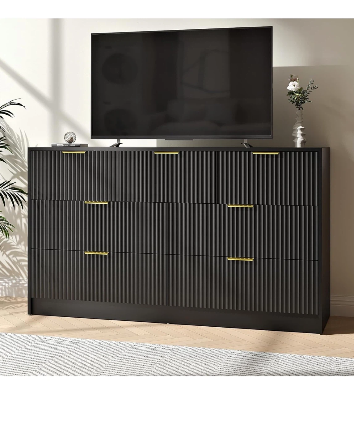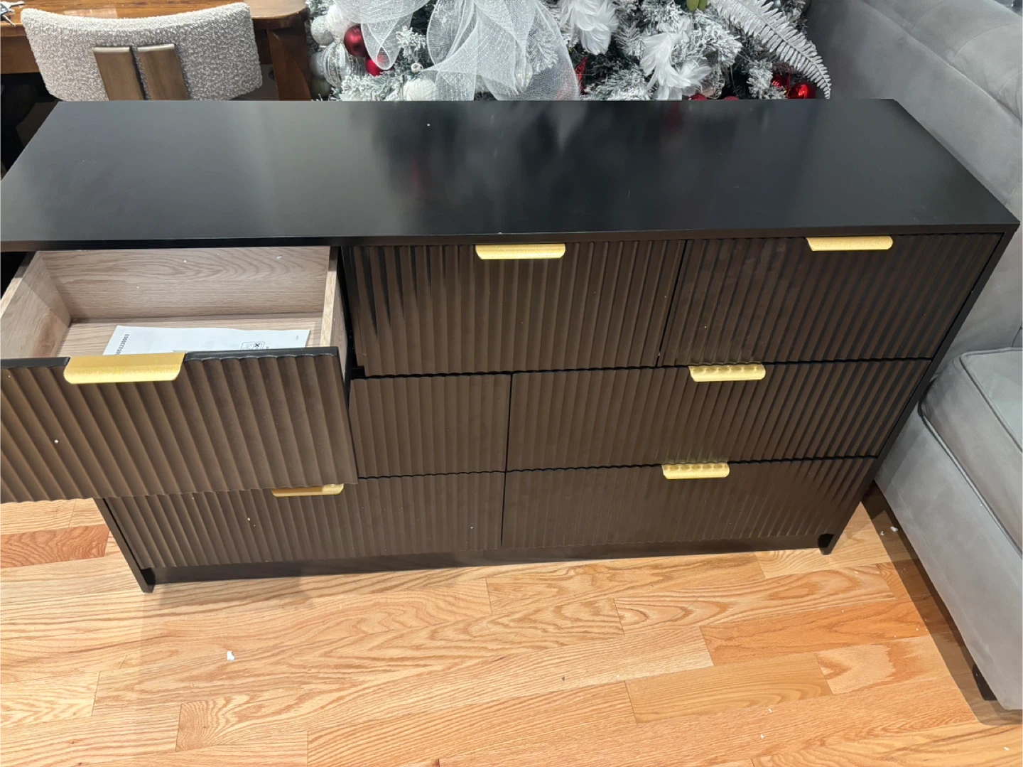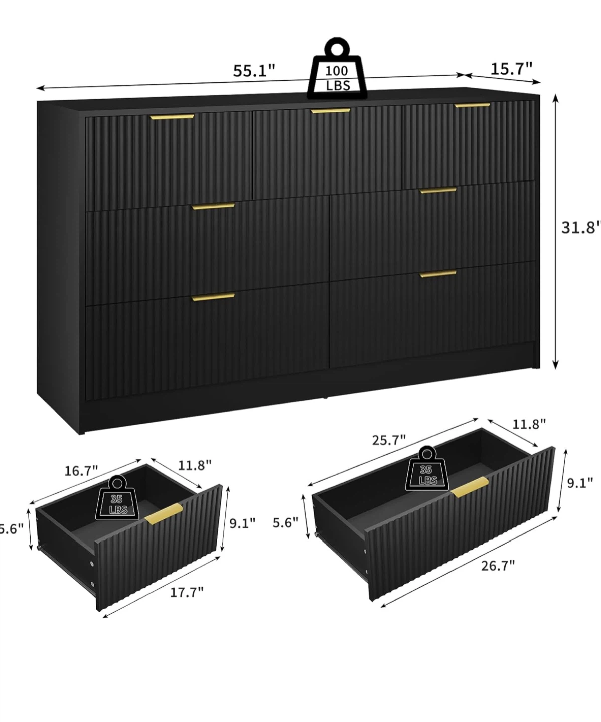 Black Fluted 7-Drawer Dresser/Console/Entryway table