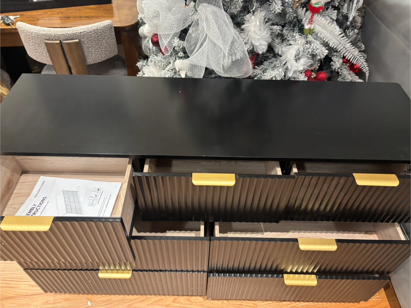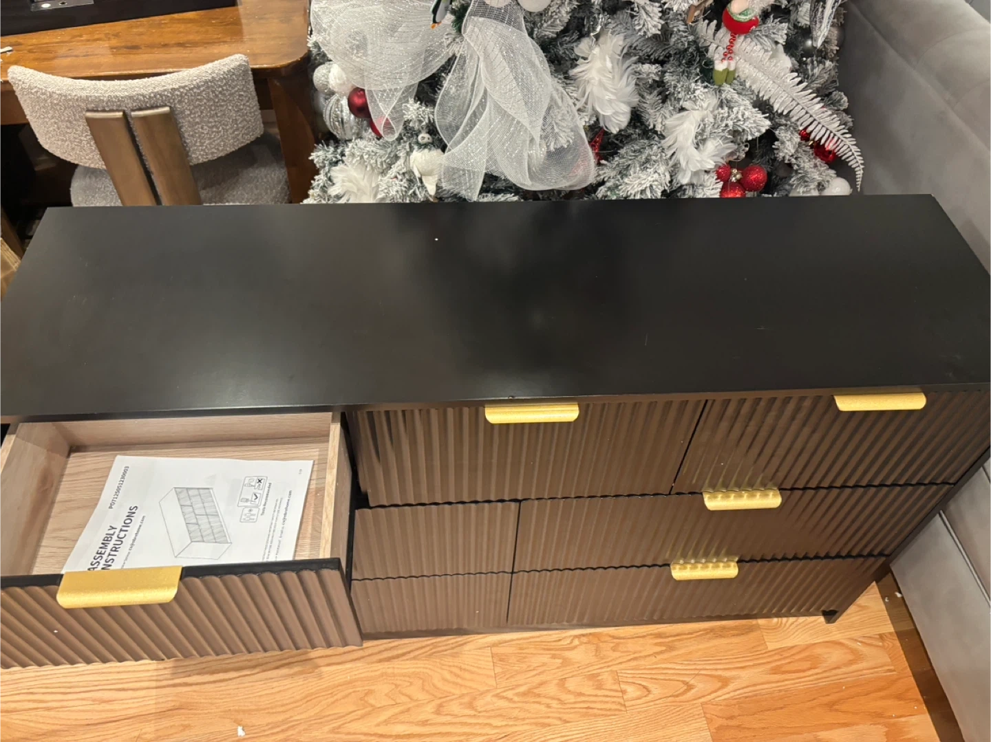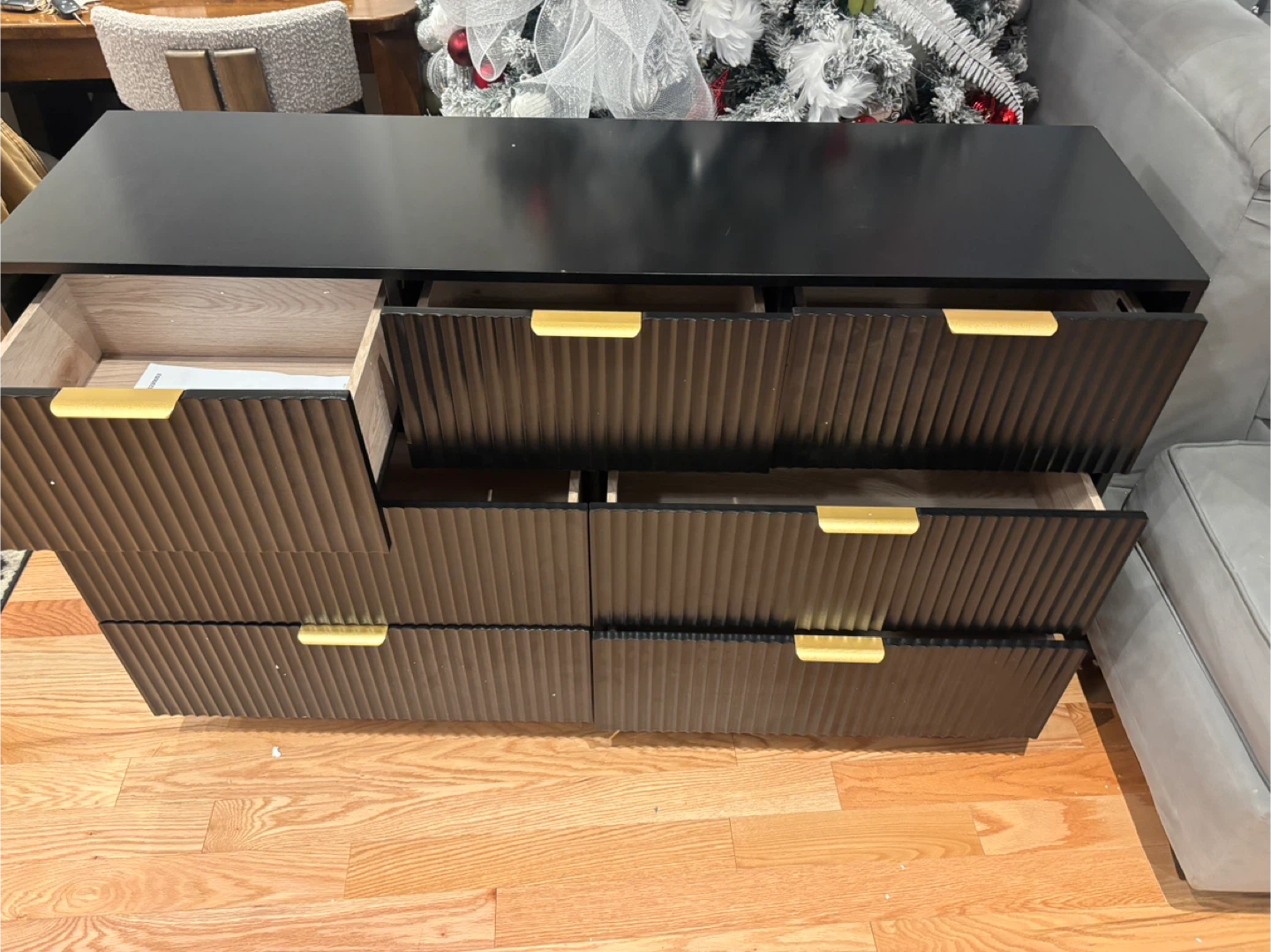Black Fluted 7-Drawer Dresser/Console/Entryway table