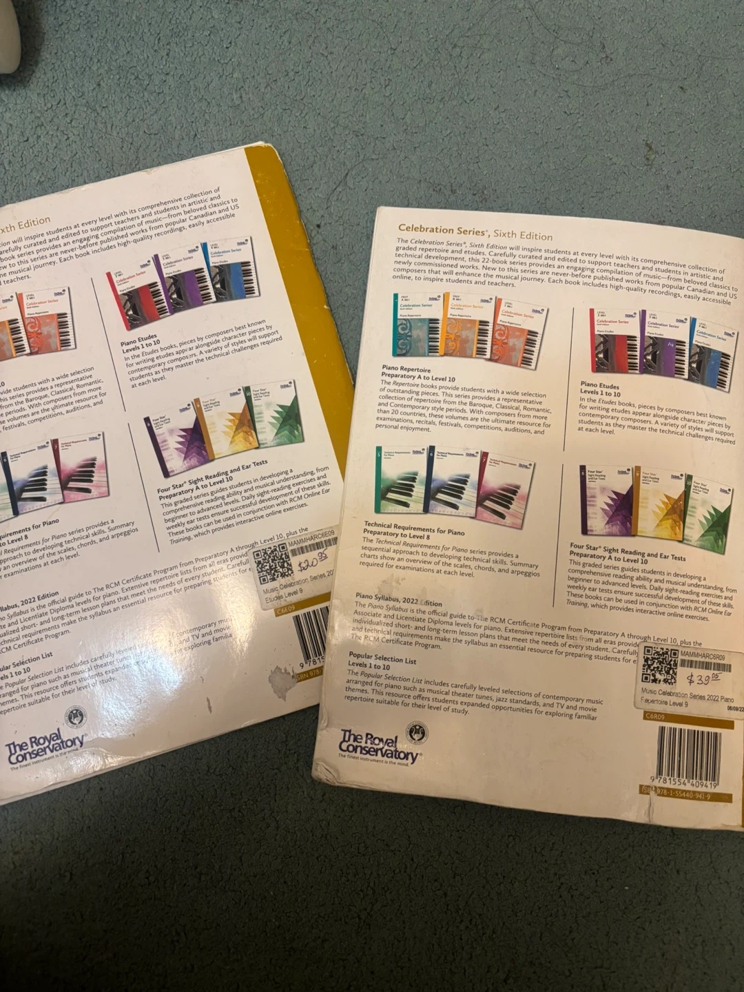 Selling two books from The Royal Conservatory Celebration Series: Sixth Edition. One is Piano Etudes and the other is Piano Repertoire, both for Level 9. Great for anyone studying piano!