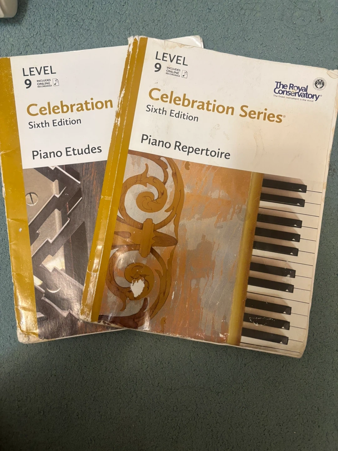 Selling two books from The Royal Conservatory Celebration Series: Sixth Edition. One is Piano Etudes and the other is Piano Repertoire, both for Level 9. Great for anyone studying piano!