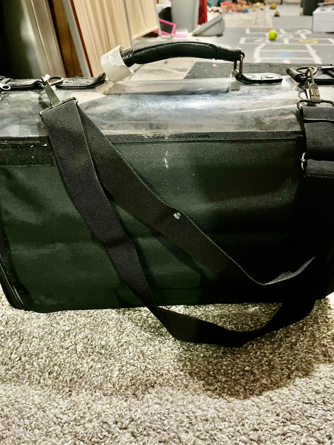 Selling a pet carrier! It's black with a clear top. It has a handle and a shoulder strap for easy carrying. Perfect for vet visits or travel pikup in Beaumont