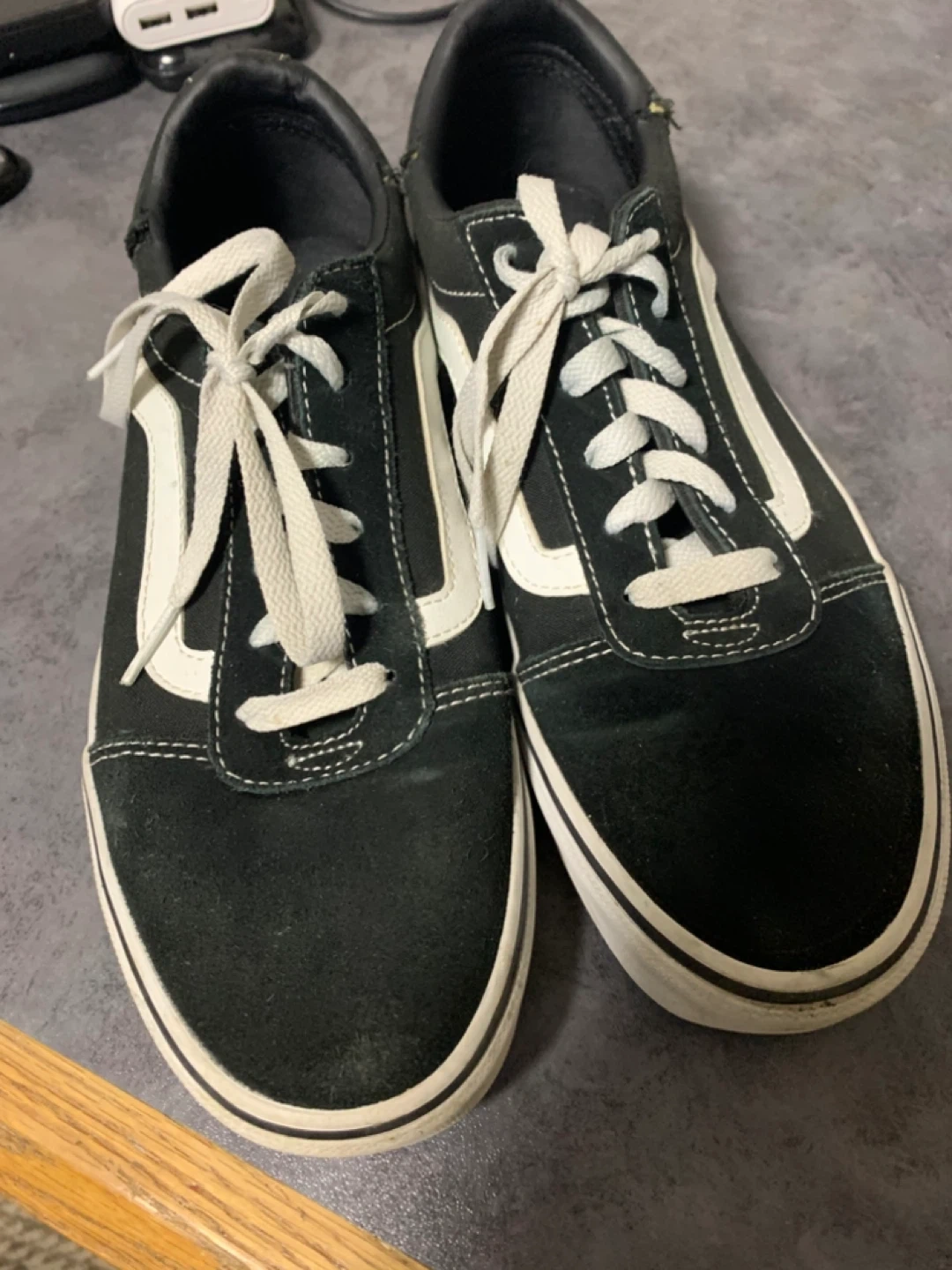 Selling a pair of classic Vans Old Skool sneakers in black and white! They're in good condition and ready for a new owner. These are a versatile addition to any wardrobe! Size 9