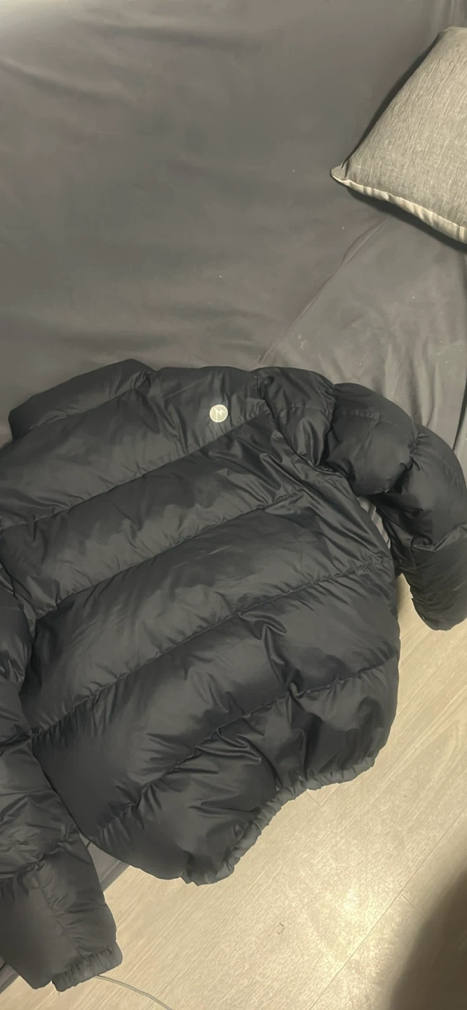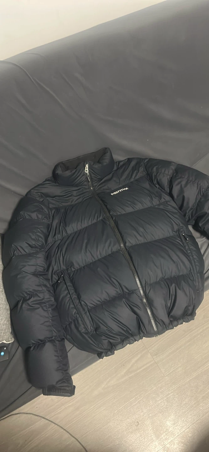 Selling a Marmot navy blue puffer jacket in size M. It's in great condition and ready to keep you warm!