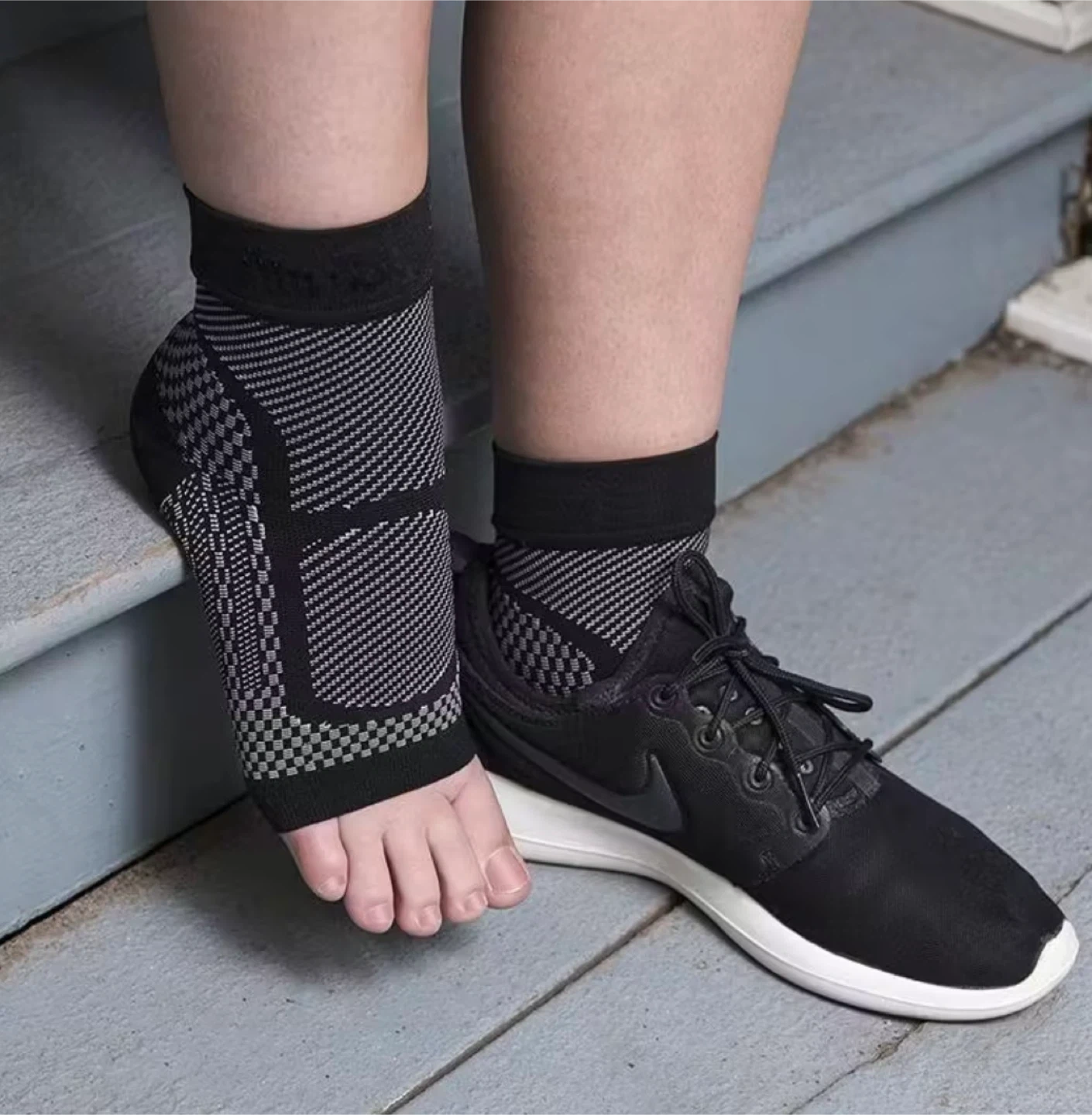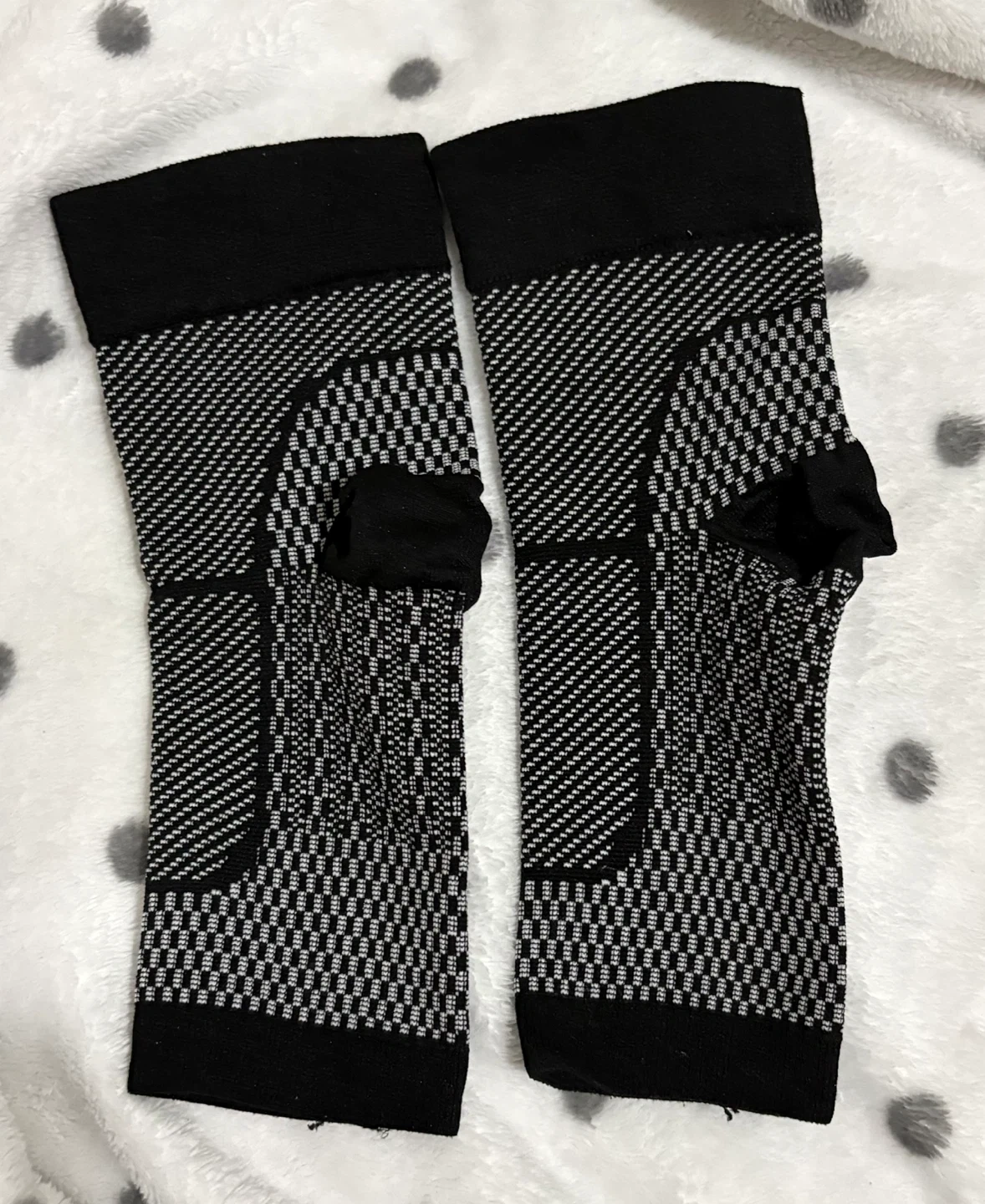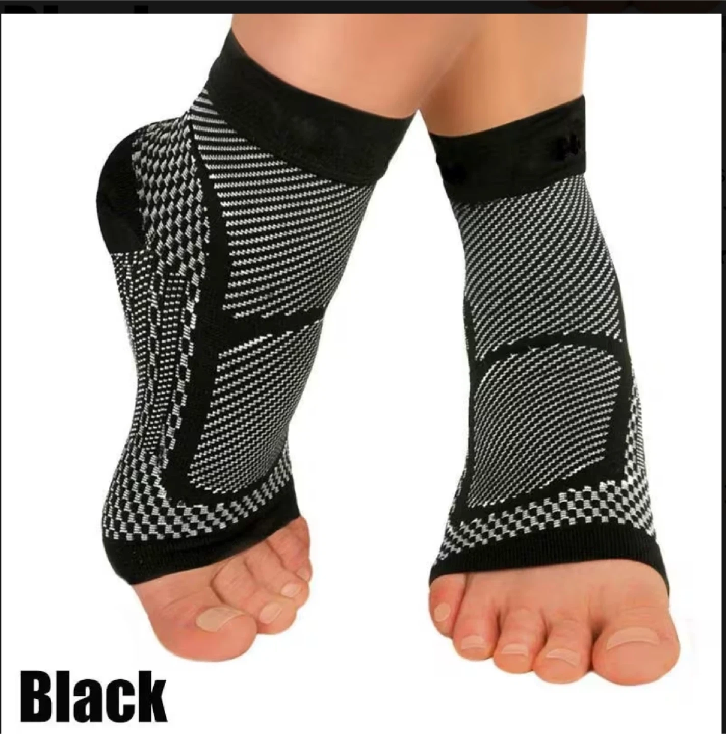 Selling a pair of black ankle toeless compression socks in size small. These socks are designed to provide support and comfort. They are in great condition and ready for a new owner!