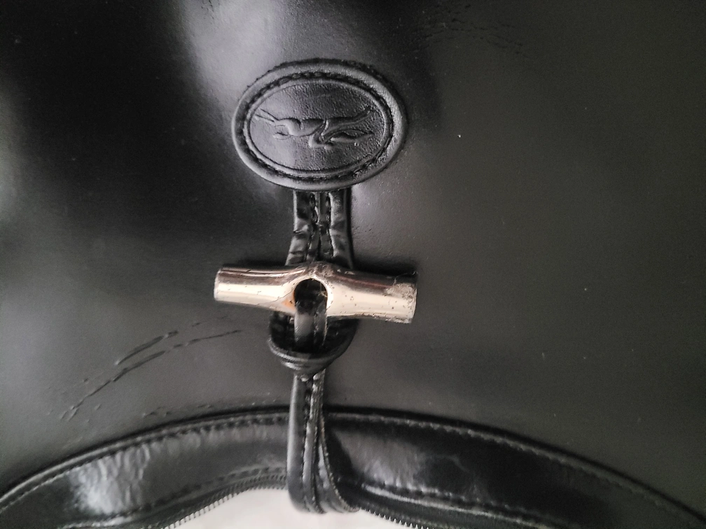 Selling a Longchamp shoulder bag in black leather. It's in good condition and has the classic Longchamp logo on the front hardware and zipper. Perfect for everyday use!